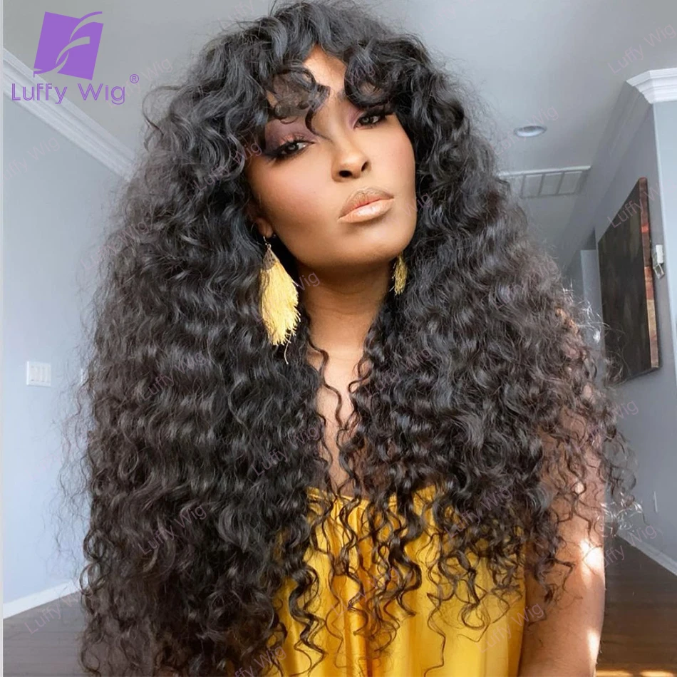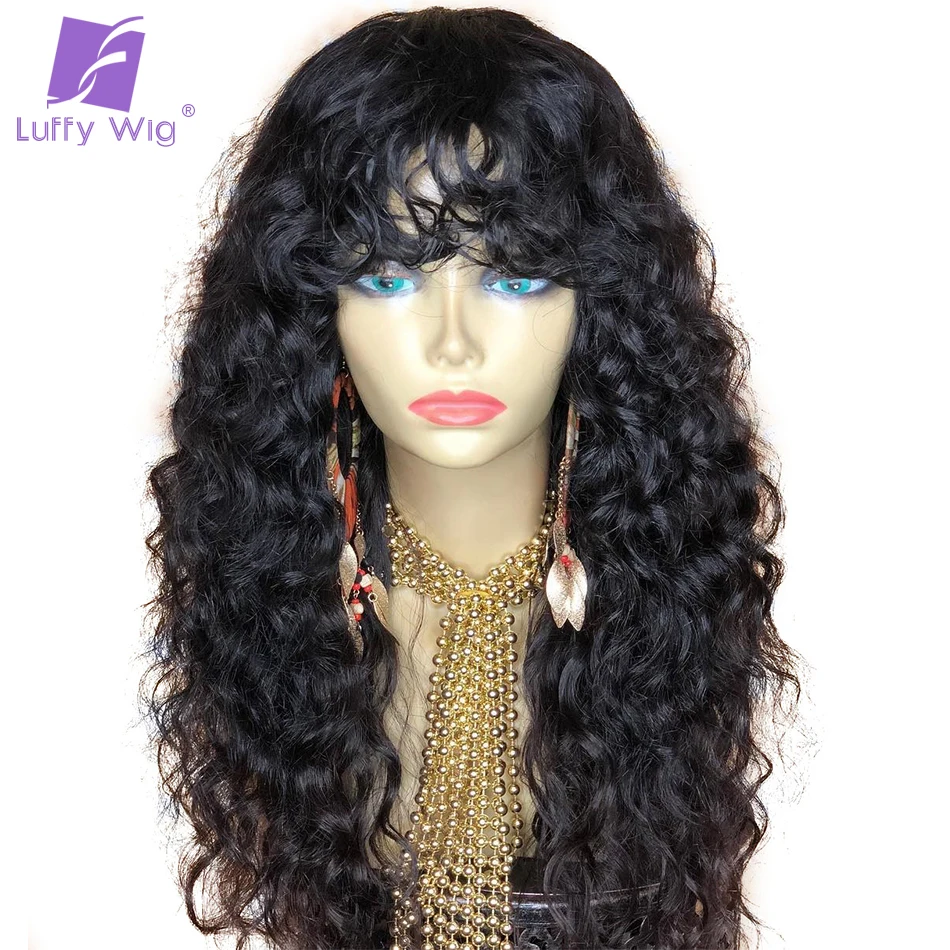 Длинные вьющиеся человеческие волосы парики с челкой