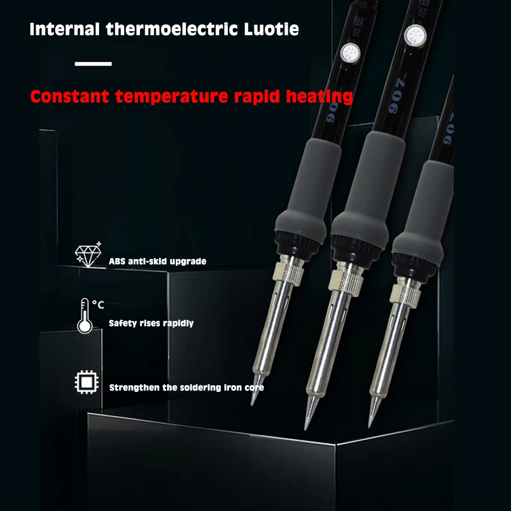 -Анти-складывающаяся оболочка шнура питания изготовлена из мягкой резины, которая эффективно защищает провода от поломки. Мощность паяльника печатается на ручке, что более удобно в использовании.