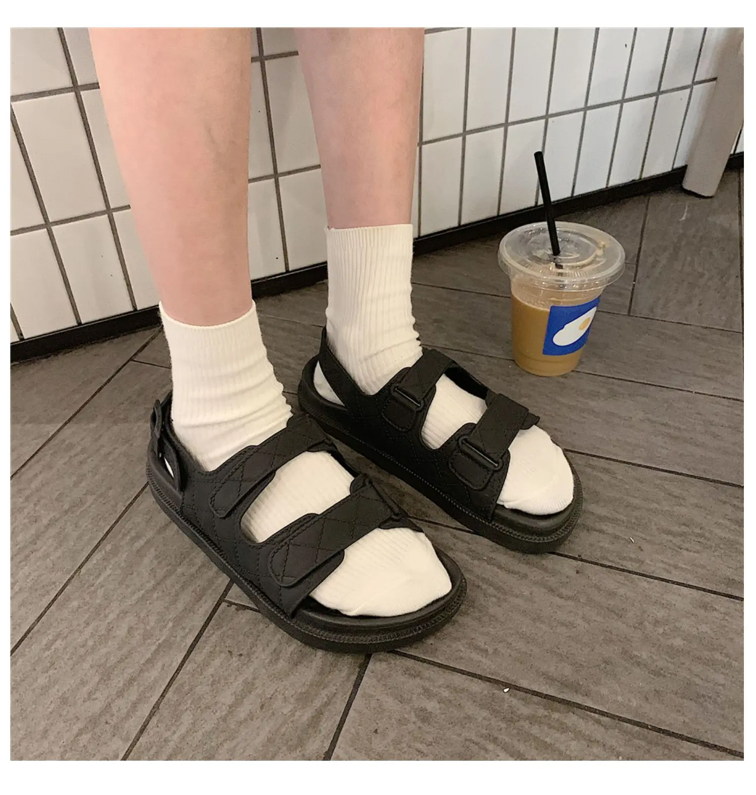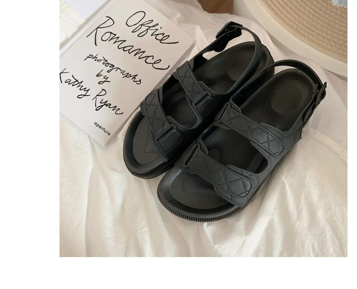 Модные сандалии; Женская летняя обувь на плоской подошве; Пляжные сандалии на липучке; Повседневная Дизайнерская обувь в римском стиле на толстой подошве; Женская обувь