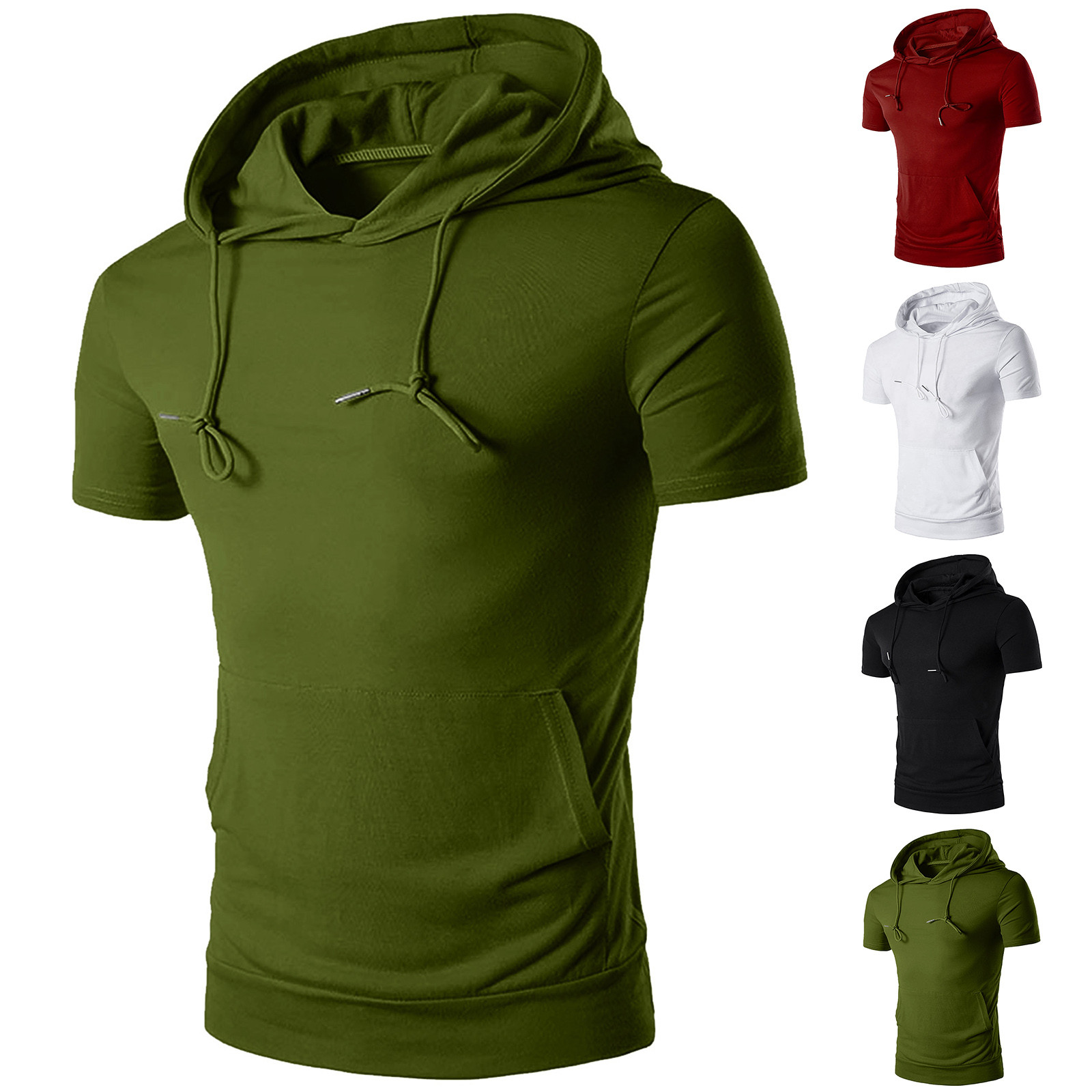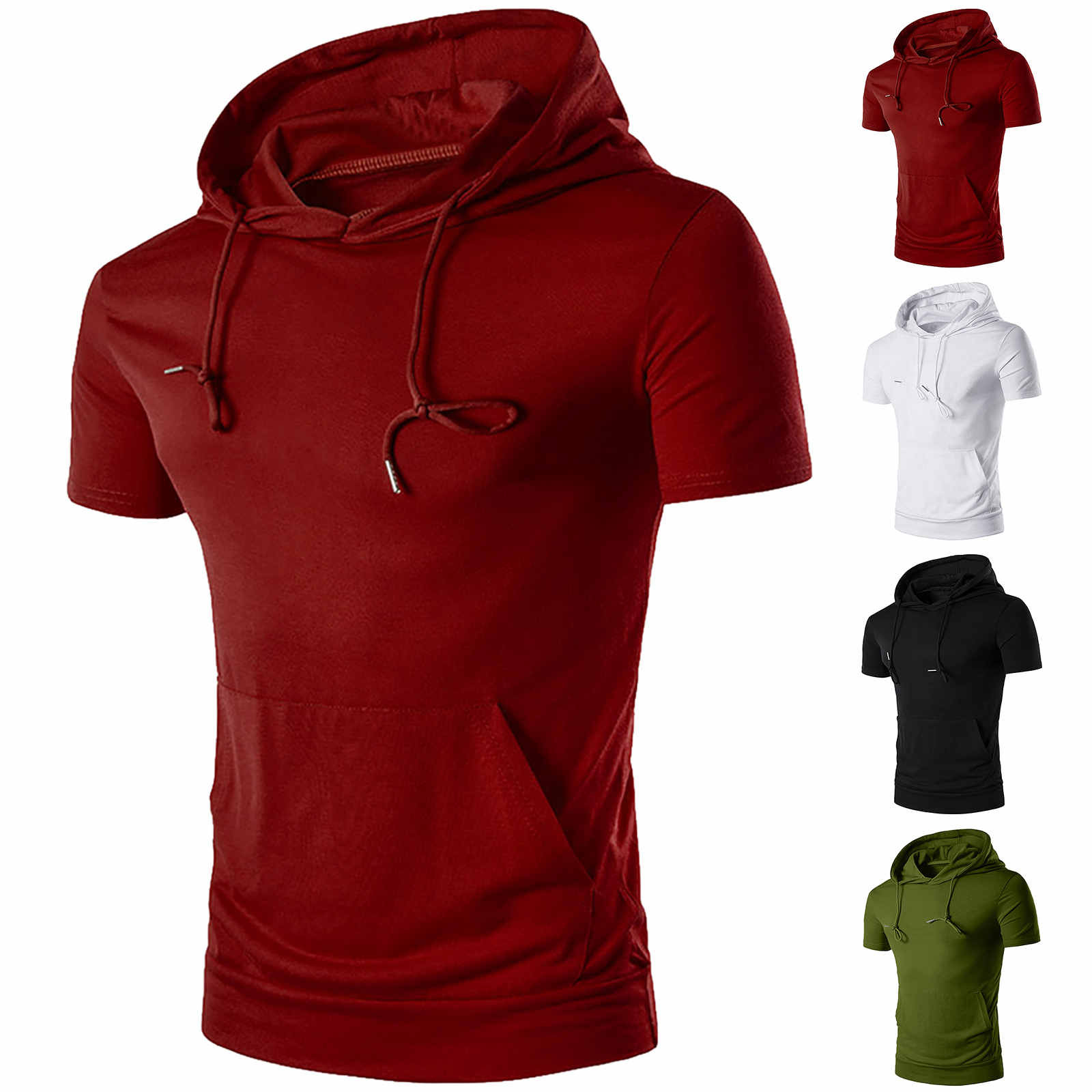 Мужская Летняя Повседневная Спортивная однотонная с капюшоном и коротким рукавом