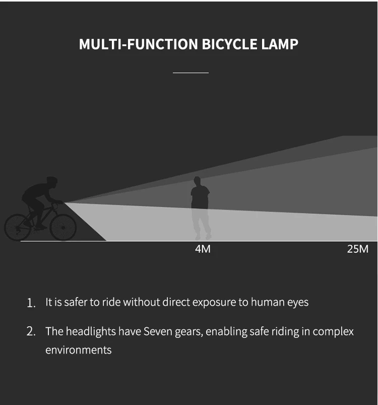 【 4 светодиодный 800 люмен OUTPUT】Велосипедный светильник очень яркий, максимальная мощность составляет 500-800 люменов, а пять светодиодный светильник s охватывают широкий диапазон, позволяя вам ездить ночью, чтобы увидеть более широкие и дальние области, И оснащен велосипедный задний светильник s, чтобы сделать вашу поездку более безопасной.