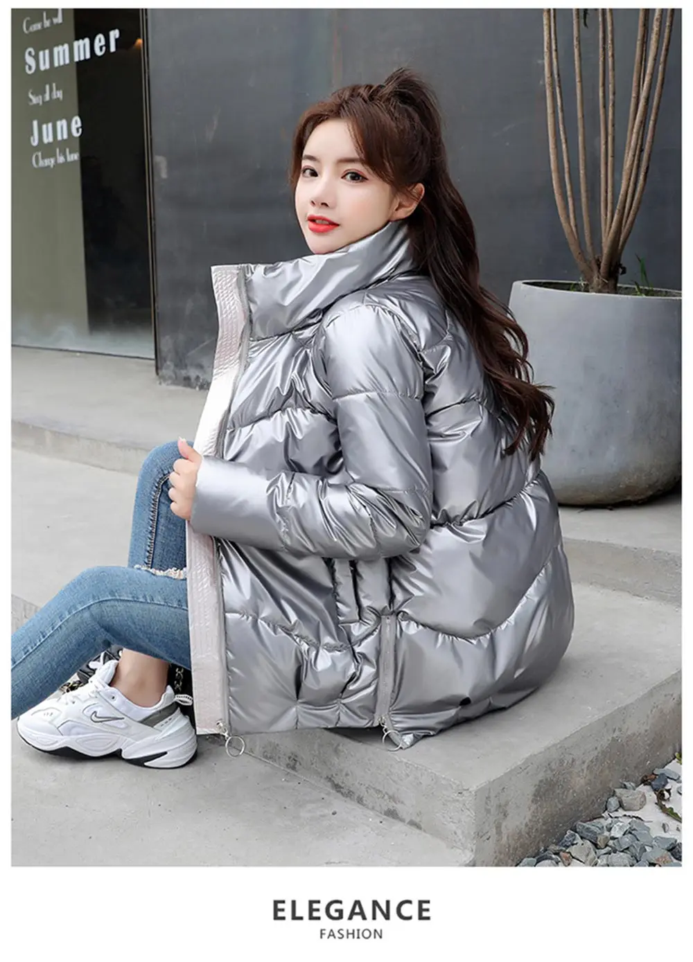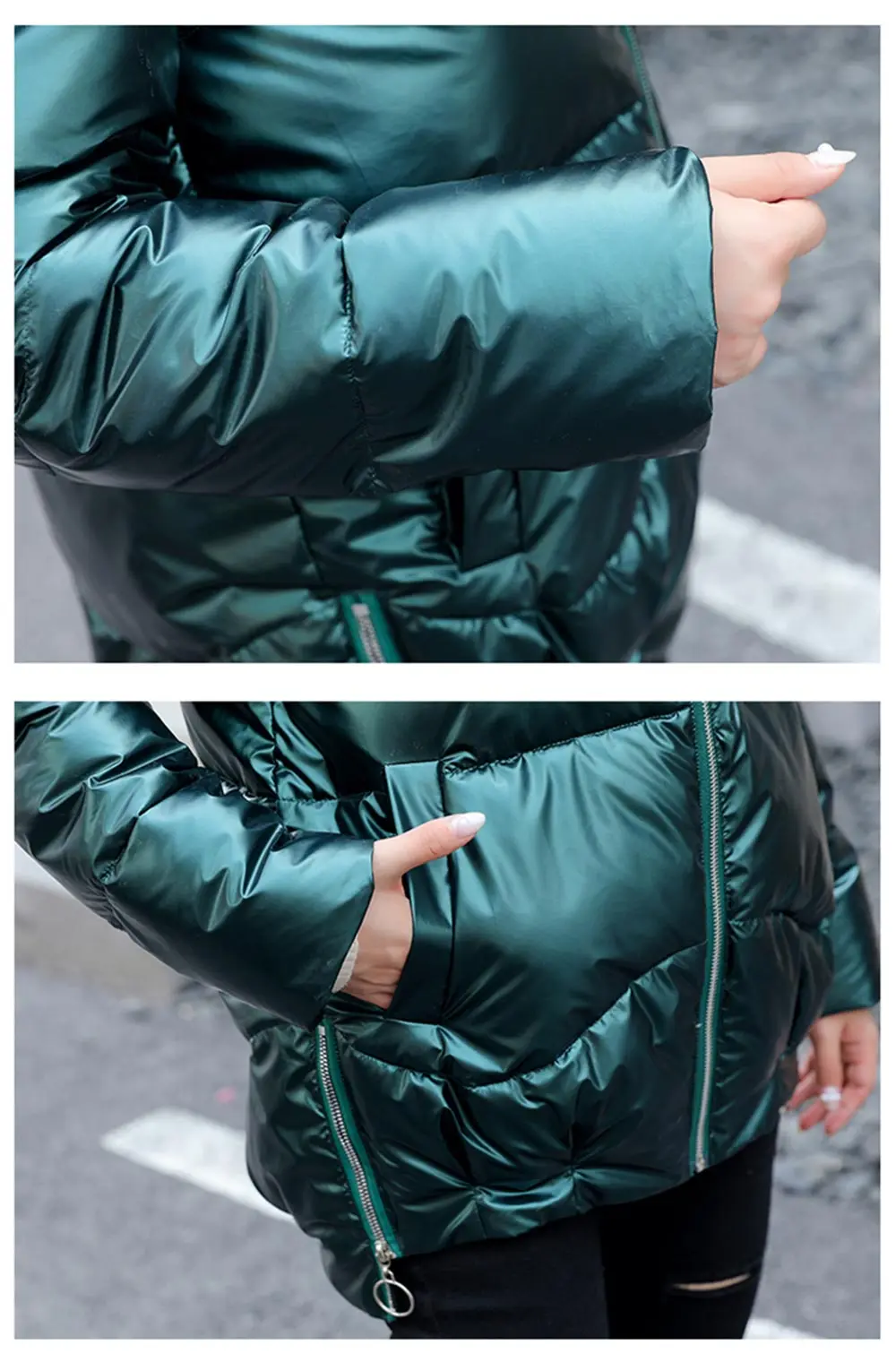 Короткие блестящие женские зимние пальто 2021 модные серебряные парки с