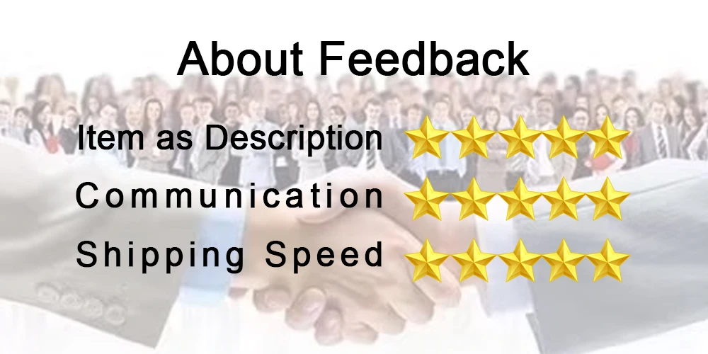 Дорогие друзья, ваши отзывы очень важны для нас. Если вы довольны полученным товаром, пожалуйста, оставьте нам 5-звездочный отзывы на AliExpress. Если вы не удовлетворены, пожалуйста, свяжитесь с нами, прежде чем оставить отрицательный отзывы, и мы сделаем все возможное, чтобы решить эту проблему для вас, пока вы не будете удовлетворены.
