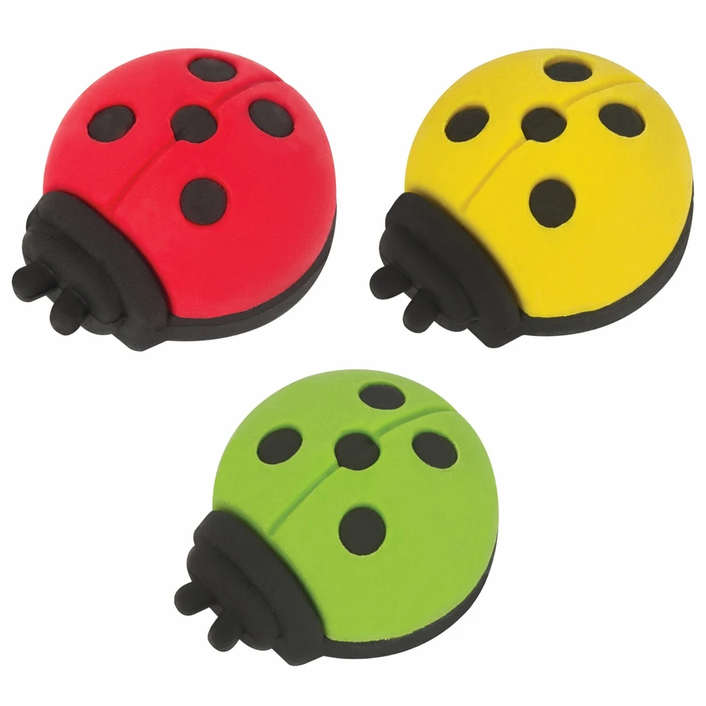 В наборе три ластика в форме божьей коровки.