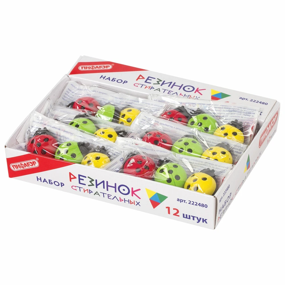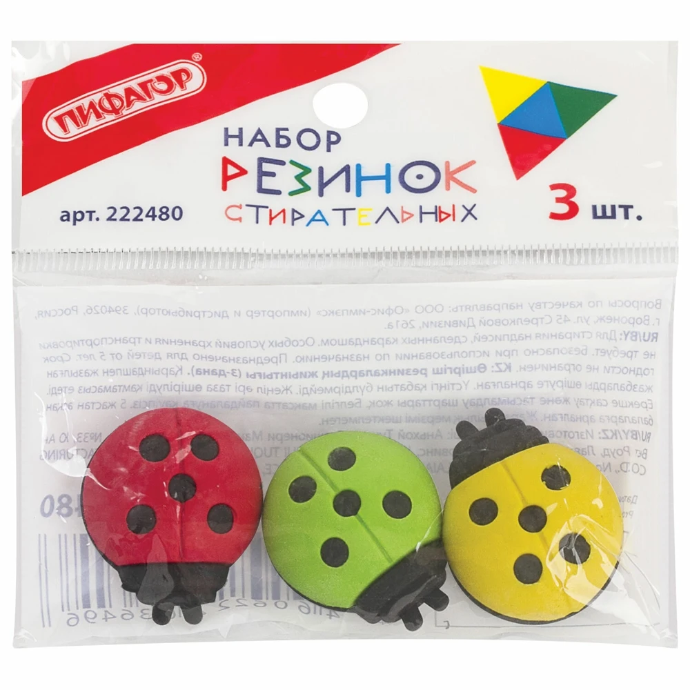 Пиши! Стирай! Ластики ПИФАГОР Божья коровка обеспечат легкое и чистое стирание.