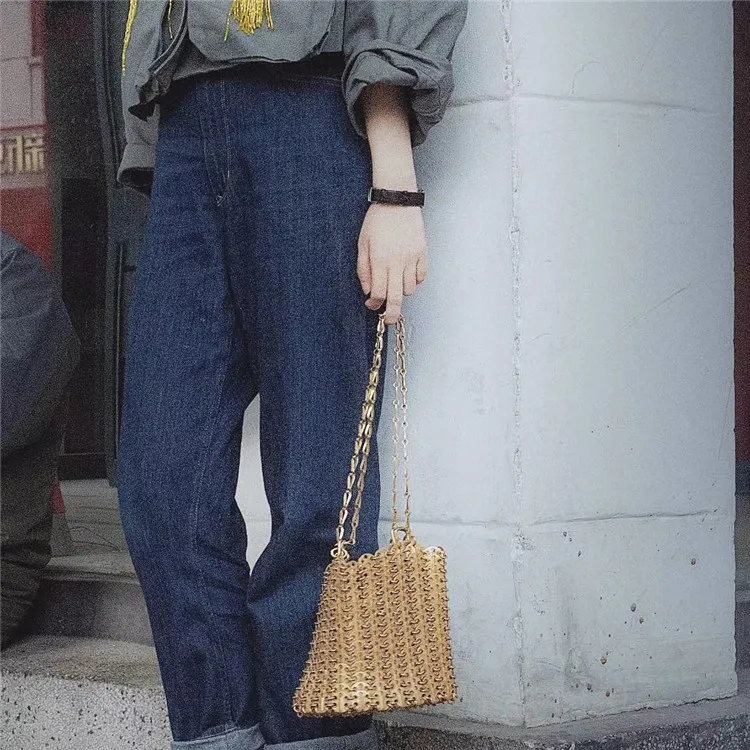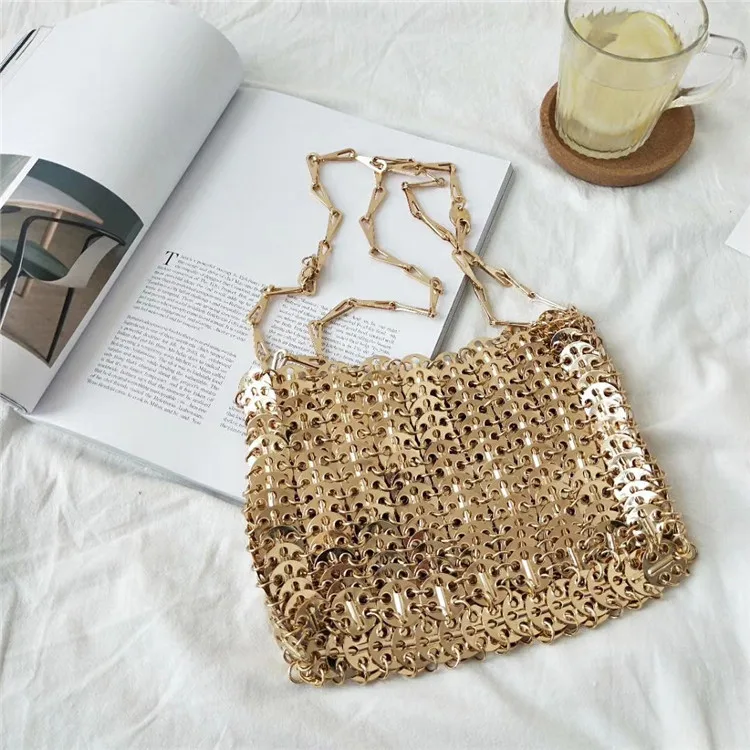 Маленькие сумочки от известного бренда на цепочке металлическая латунная сумка