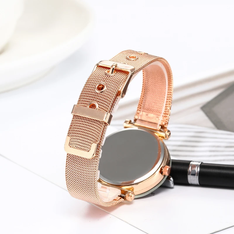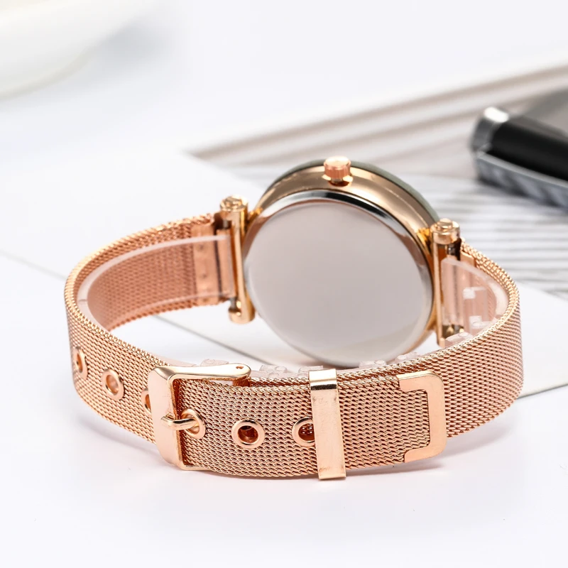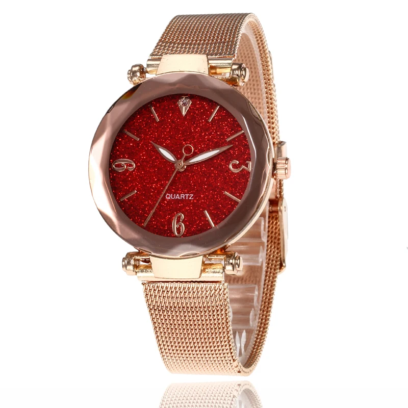 Часы стразы женские кварцевые модные наручные с кожаным ремешком цвет розовое