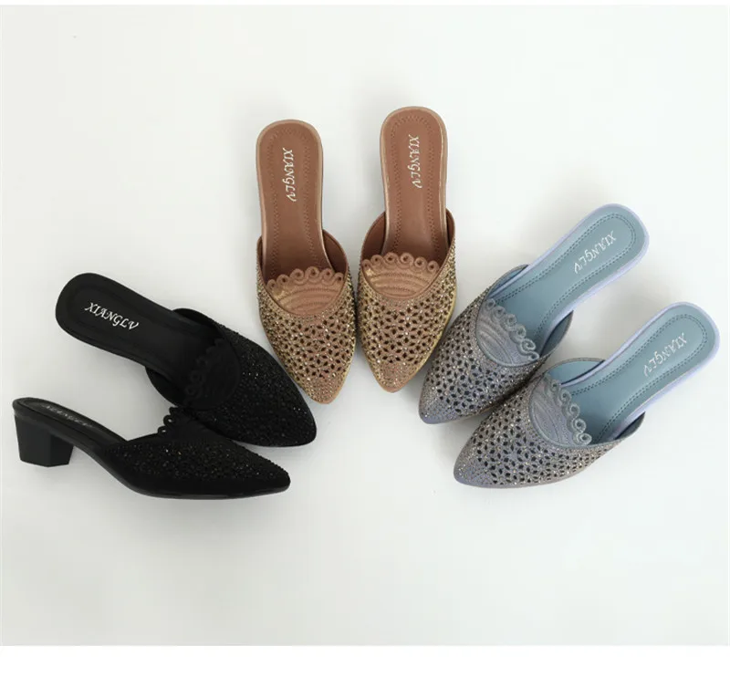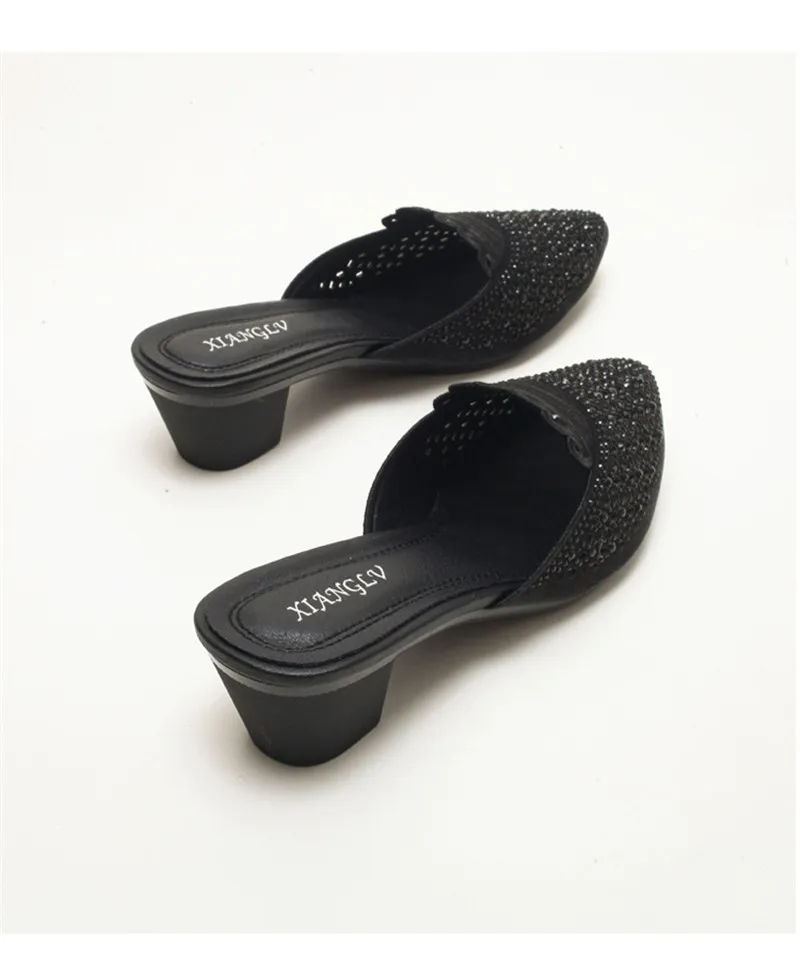 Шлепанцы женские с острым носком на высоком каблуке | Обувь