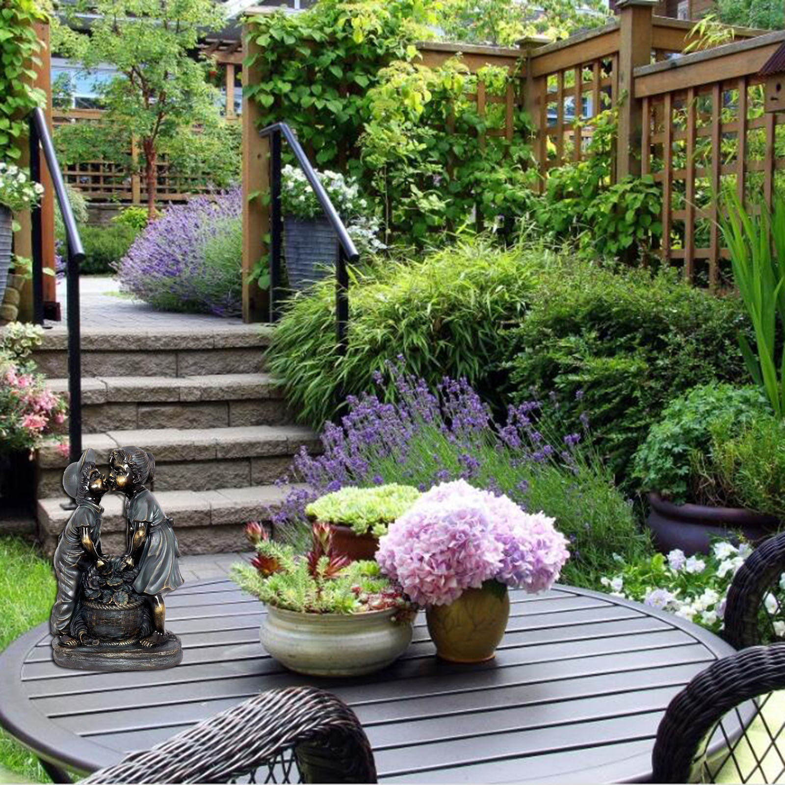 Мальчик и садовая статуя девушки ребенок с светящимися мушками сад статуя-украшение сада Украшение сада на открытом воздухе jardineria decoracion