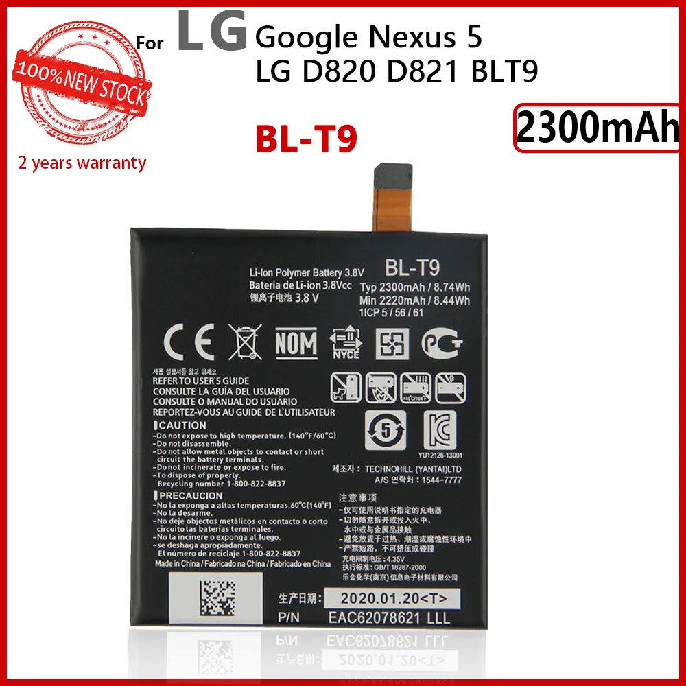 100% натуральная BL-T9 батарея для LG Google Nexus 5 LG D820 D821 E980 2300mAh Мобильный телефон в наличии новые батареи + номер отслеживания