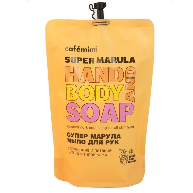 Жидкое мыло для рук от Cafemimi Супер Марула на основе натуральных экстрактов и растительных масел оказывает мягкий и бережный уход за кожей рук.