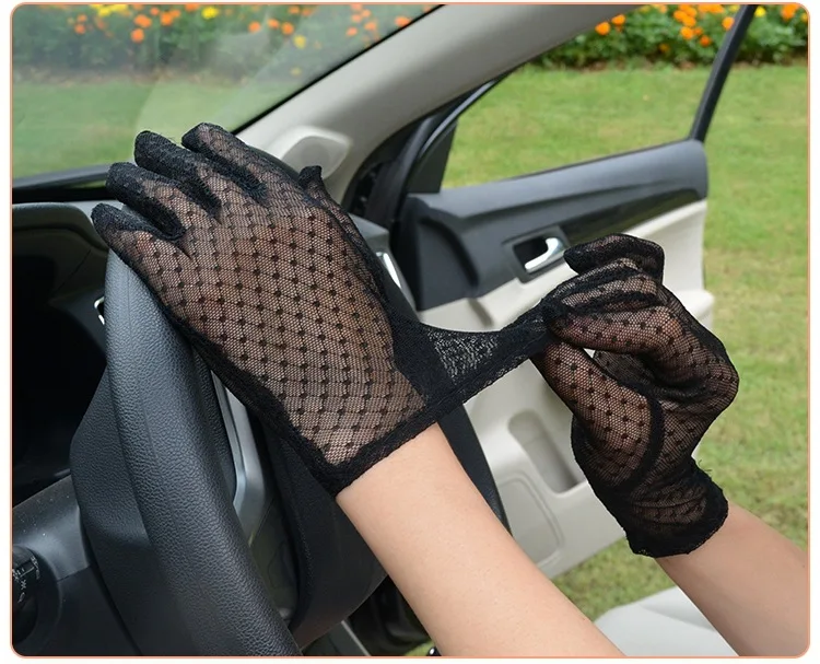 Кружевные перчатки Весна и лето новые женские солнцезащитные перчатки с бантом черные сетчатые кружевные этикетки женские перчатки 0 долл. США/Шт.