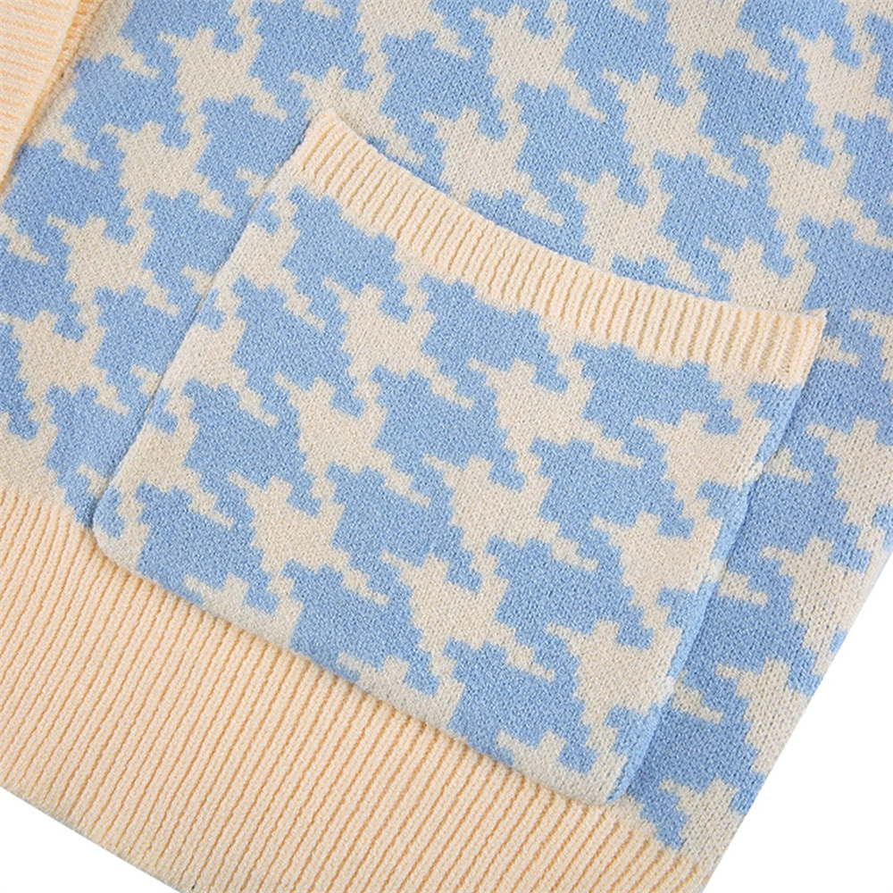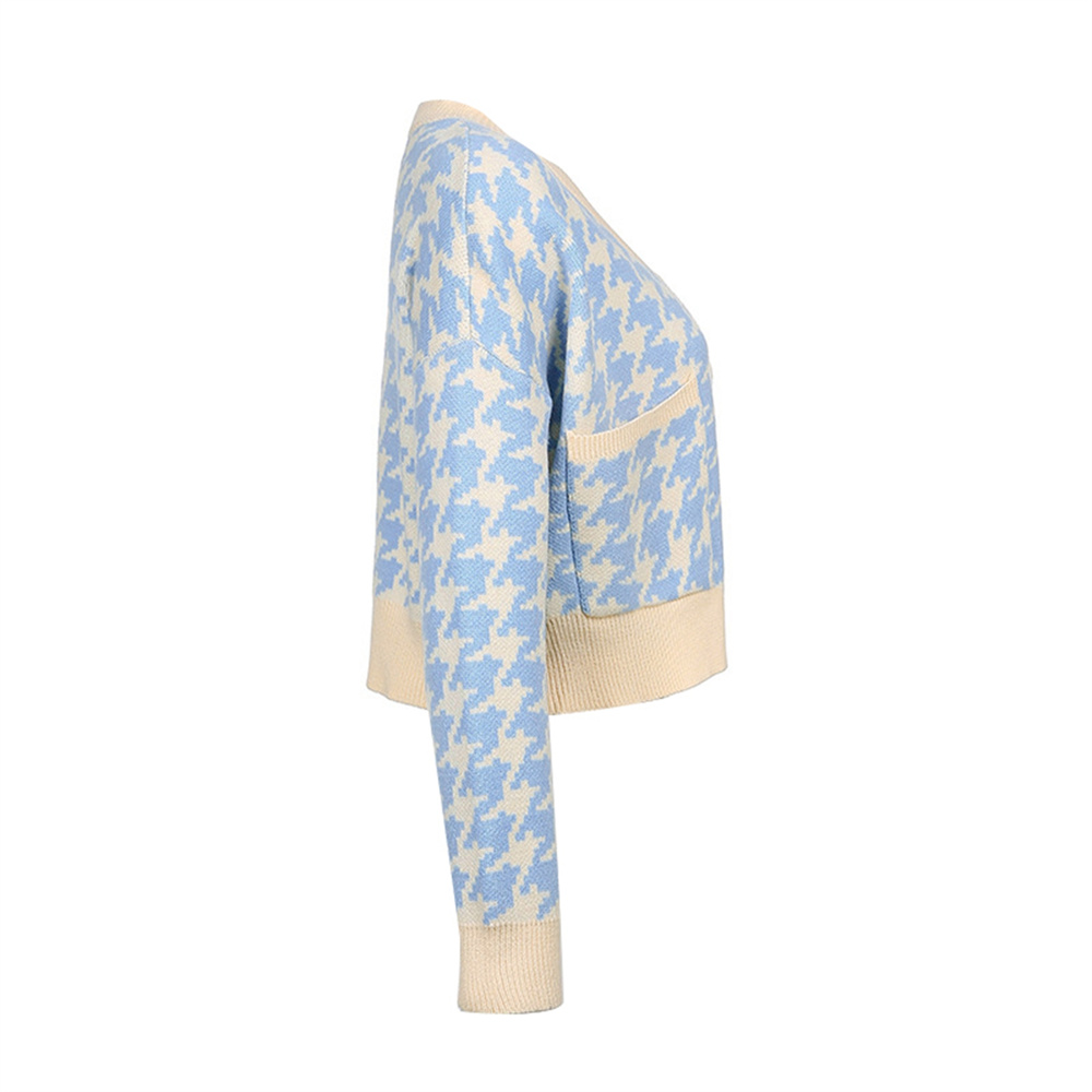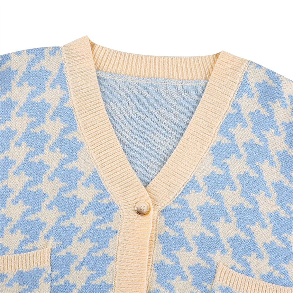 Пальто с длинными рукавами и v-образным вырезом; Однобортный Кардиган; Узор «гусиная лапка»; Простой и стильный.