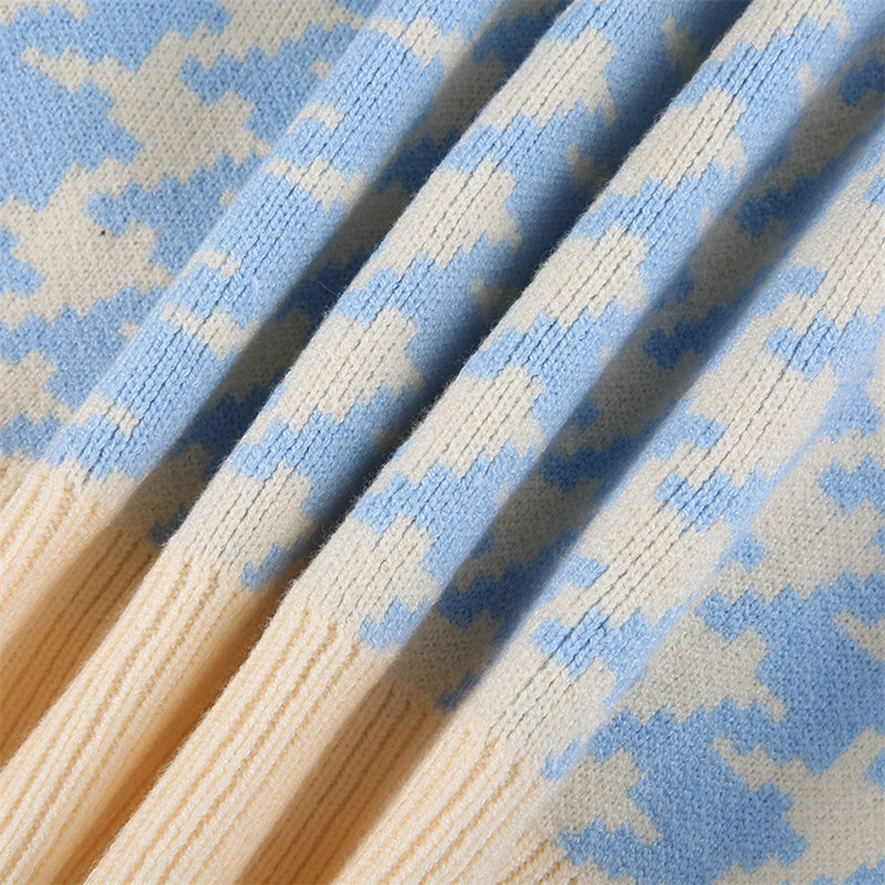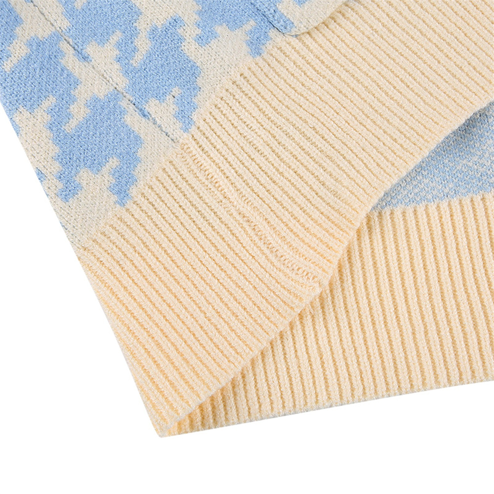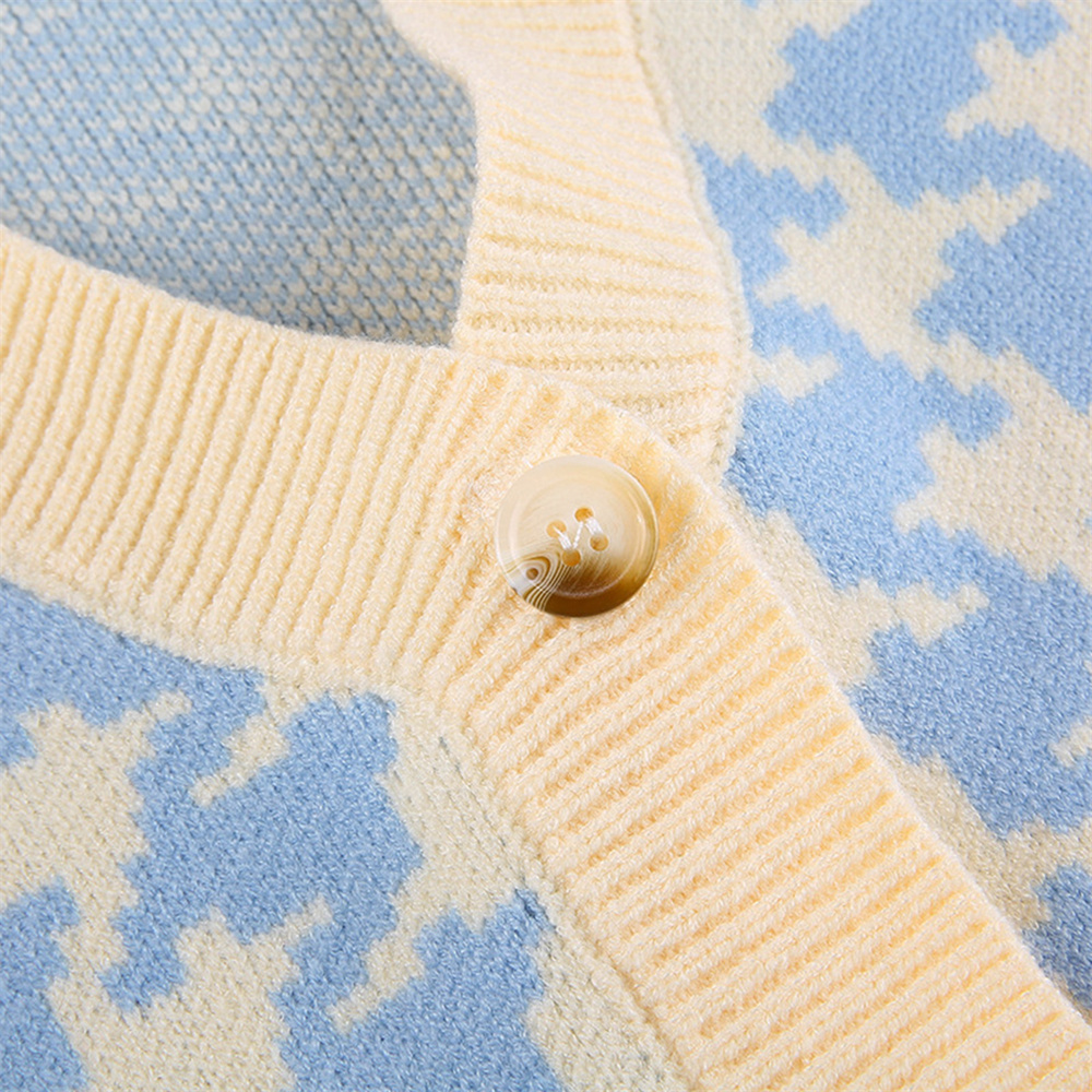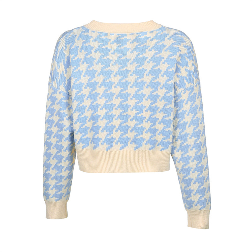 Пальто с длинными рукавами и v-образным вырезом; Однобортный Кардиган; Узор «гусиная лапка»; Простой и стильный.