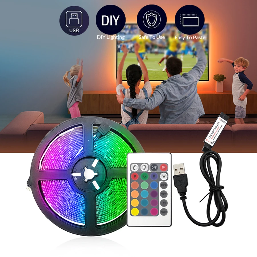 24 клавиши Управление: 1 рулон * 0,5 м/1 м/2 м/3 м/4 м/5 м цветных (RGB) светодиодных лент + 24-кнопочный Пульт статическое (без аккумулятора)