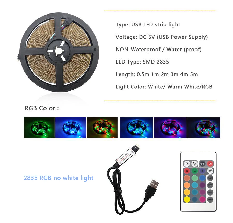 3 клавиши управления: 1 рулон * 0,5 м/1 м/2 м/3 м/4 м/5 м RGB Светодиодная лента + 3 клавиши Contrllor (без пульта)