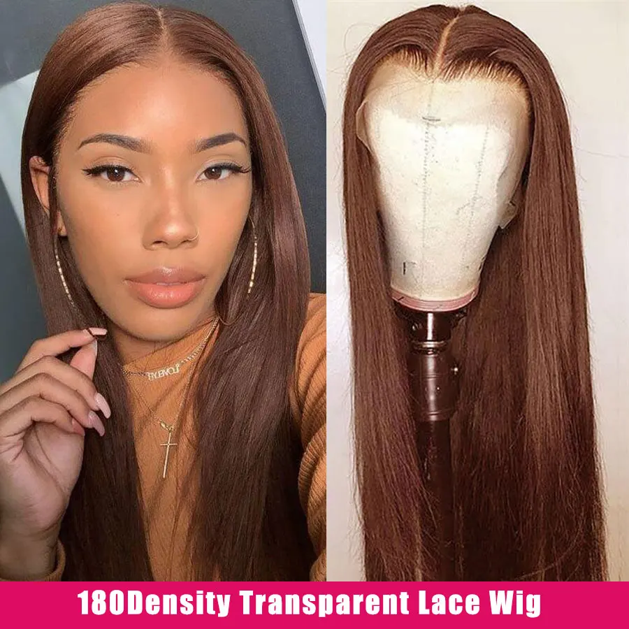 #4 светильник, коричневый прямой кружевной передний парик, прозрачные кружевные парики, бесклеевой парик, цветные человеческие волосы, парики для женщин, T Part Remy парик