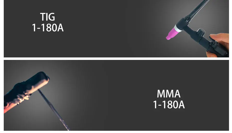 【Сварка TIG】10-180AMP DC TIG выход электрического тока; Качественная Сварка TIG из нержавеющей или стали и точная сварка на тоньше калибровочных материалах; Оба HF старт ручной фонарь управления и точный Педальный сварочный контроль тепла.