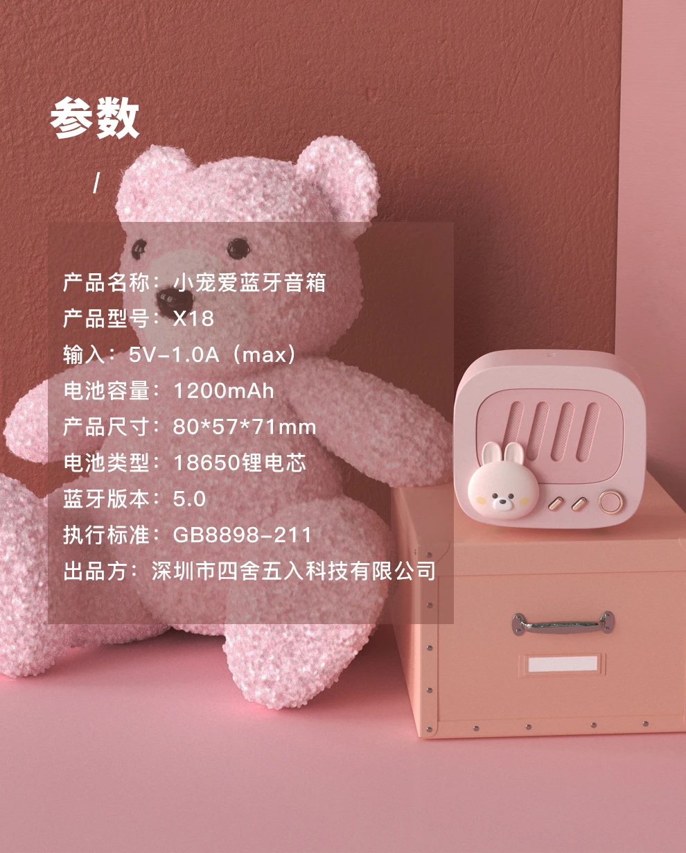 Название продукта: bluetooth-динамик Little Chong Ai Емкость аккумулятора: 1200 мАч Размер изделия: 80*57*71 мм Вес изделия: 125 г Версия Bluetooth: 5,0