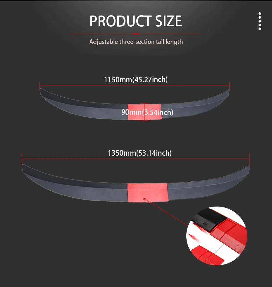 2. Регулируемая длина для автомобилей различных размеров улучшает аэродинамический и спортивный внешний вид вашего автомобиля