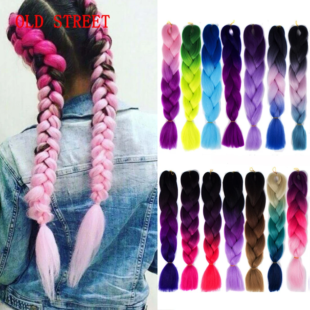 Красочные Синтетические длинные Джамбо плетеные волосы для наращивания для женщин Омбре термостойкие косички из волокна для плетения оптом 100 г/шт.
