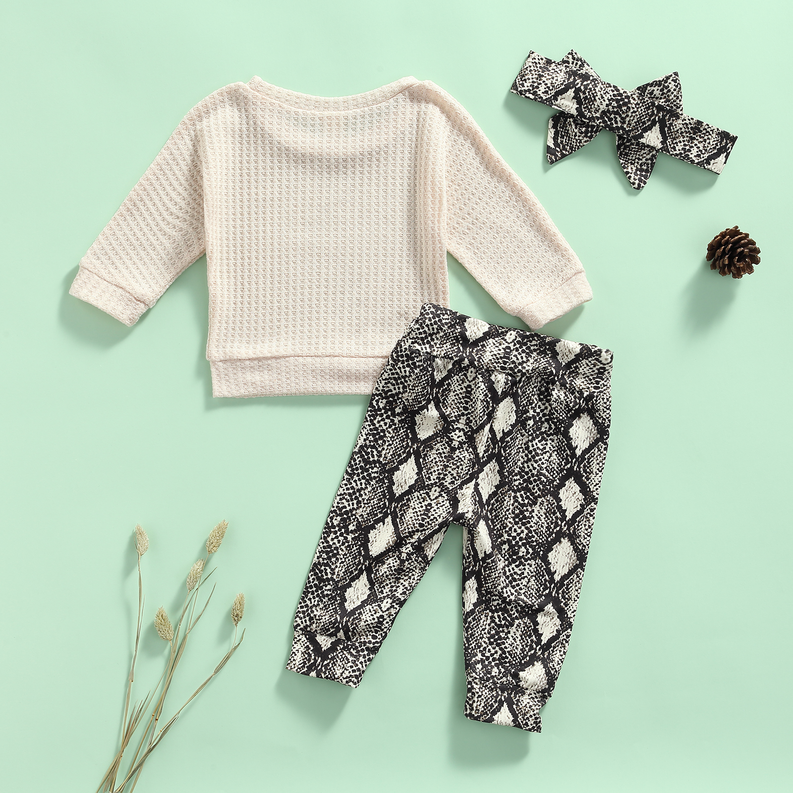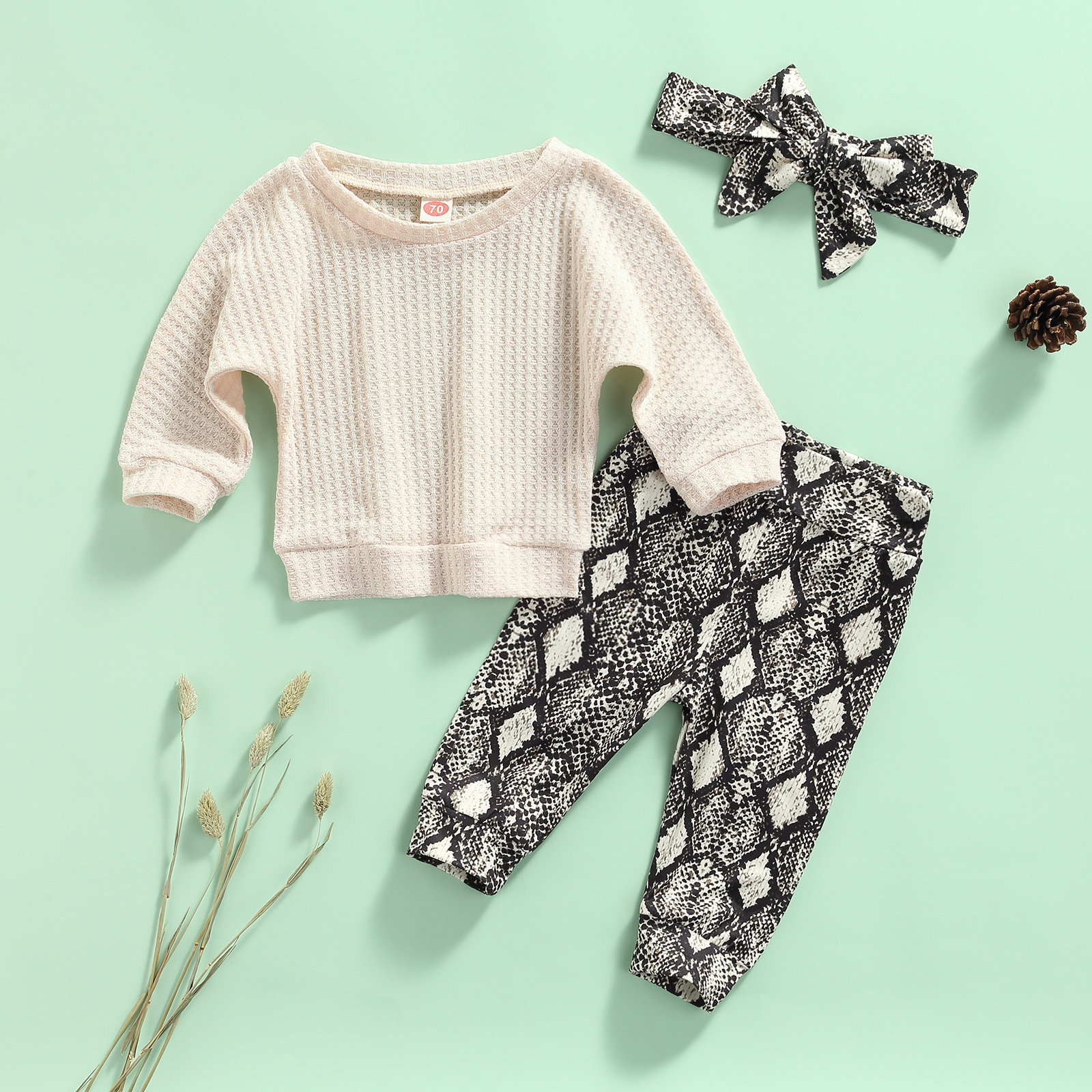 Детский костюм из трех предметов обеспечивает комфортное ношение вашего ребенка. Дизайн сердца/змеиной кожи делает его модным и особенным.