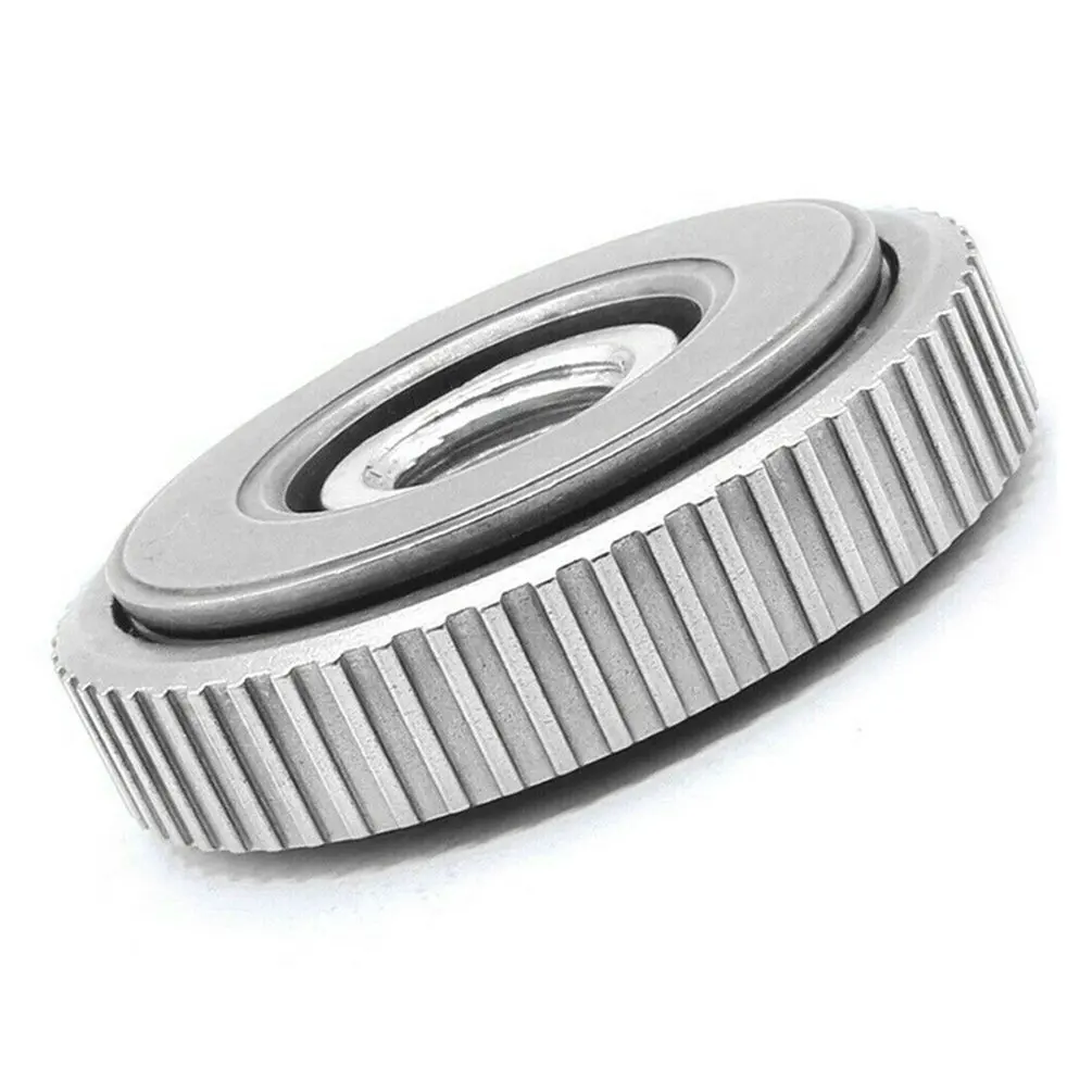 Зажимная гайка подходит для всех угловых шлифовальных машин интерфейса M14 на рынке, она используется для угловых шлифовальных машин и режущих машин с скоростью 1200 Вт 11000r/мин и диаметром шлифовального диска 125. Например, алмазные режущие диски, шлифовальные диски, шлифовальные диски в форме чашки, алмазные пластины и другие типы шлифовальных кругов.