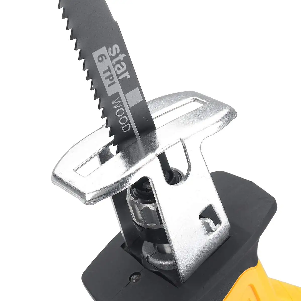 Быстрое изменение лезвия: поверните бортовую защелку возле передней части сабельной пилы 90 против часовой стрелки, затем вы можете быстро изменить лезвия пилы. Операции с голыми руками без каких-либо инструментов, действительно удобно.