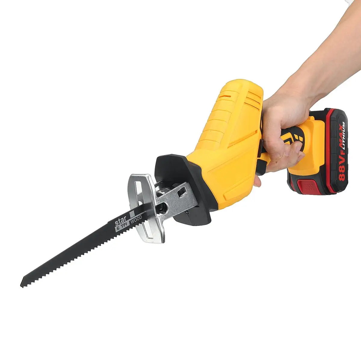 Портативная Беспроводная пила: Беспроводная сабельная пила гораздо удобнее в использовании, чем Проводная. Легко носить с собой и с мощным двигателем, отлично подходит для резки дерева, ПВХ, металла, обрезки деревьев или небольших проектов вокруг дома.