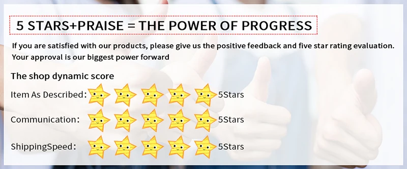 Если вы довольны нашими товарами или обслуживанием, пожалуйста, поставьте нам 5 звезд. С вашей поддержкой, мы будем лучше и лучше, и мы предложим вам лучшие продукты и услуги.
