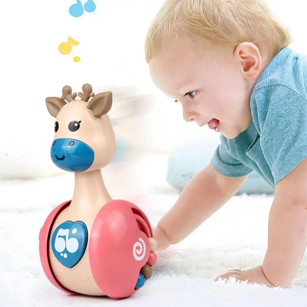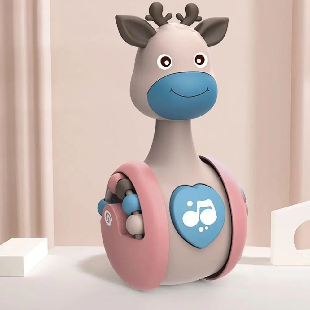 1PC Fawn Baby Slip Tumbler Rattle Learning Educational Toys Newborn Baby Grasp Hand Bell Phone Button Twisting Random Color Toys