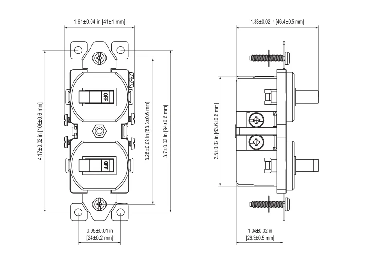 -Боковые клеммы провода принимают #12 или #14 AWG Cu твердый или многожильный провод