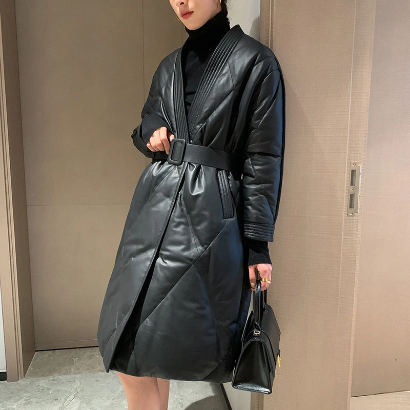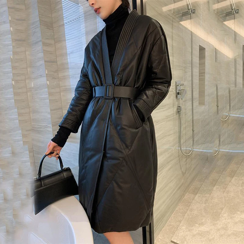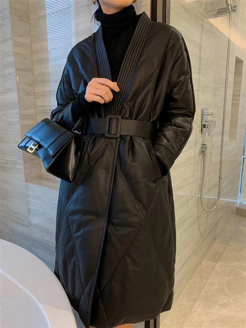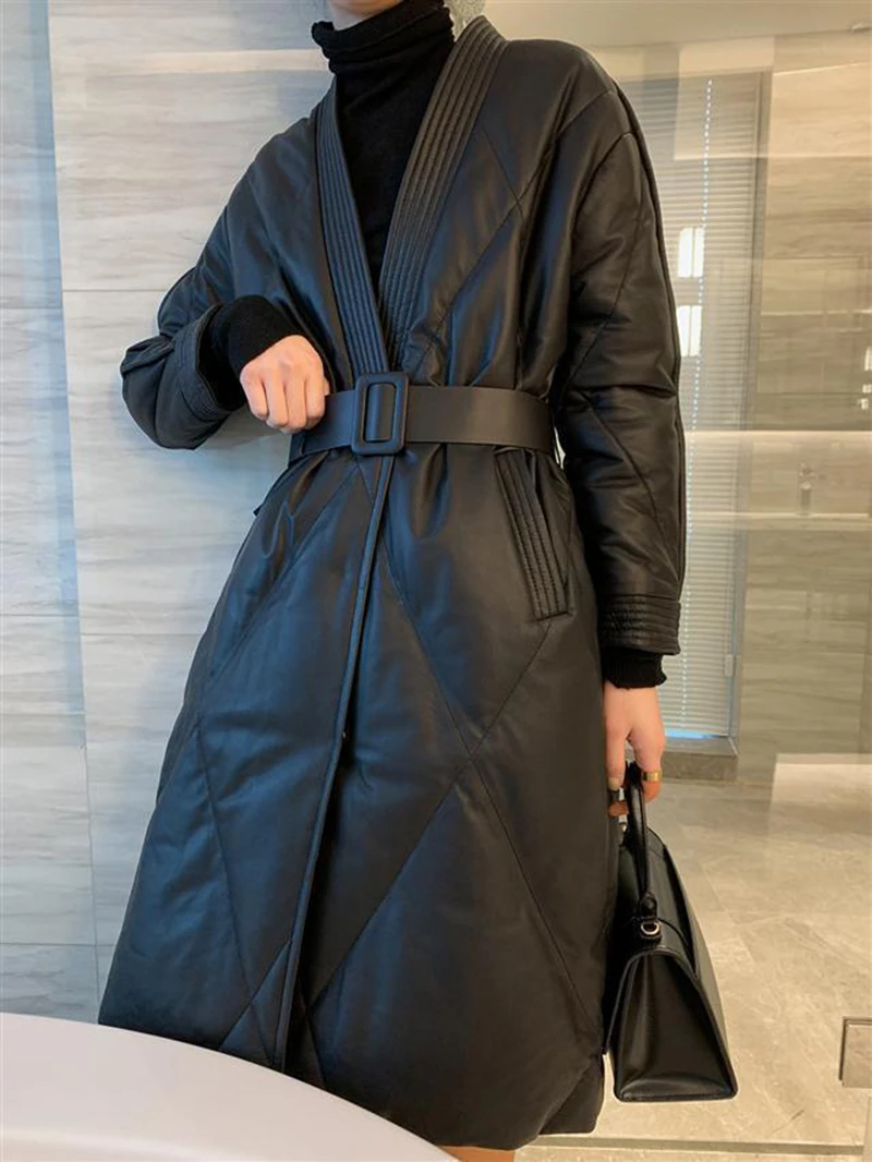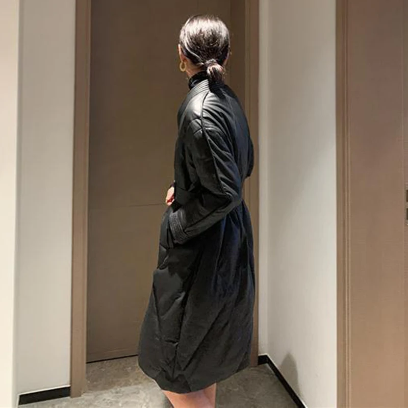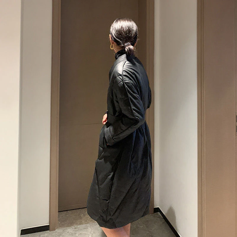 Женская Стеганая куртка средней длины черная свободная утепленная большого