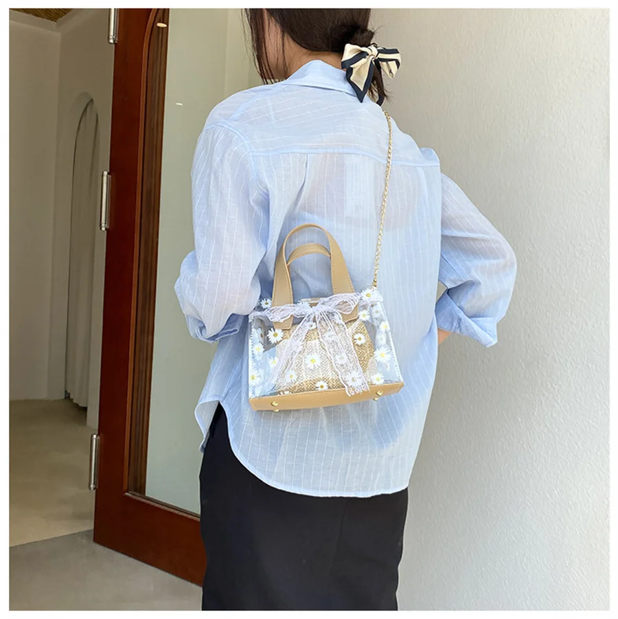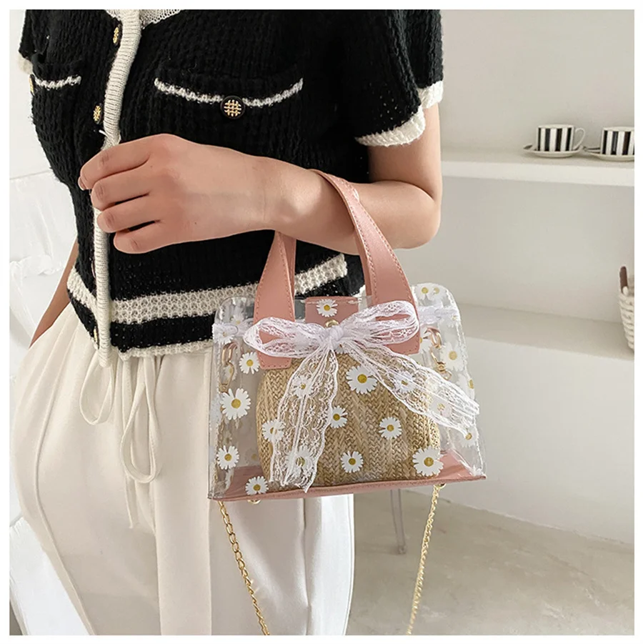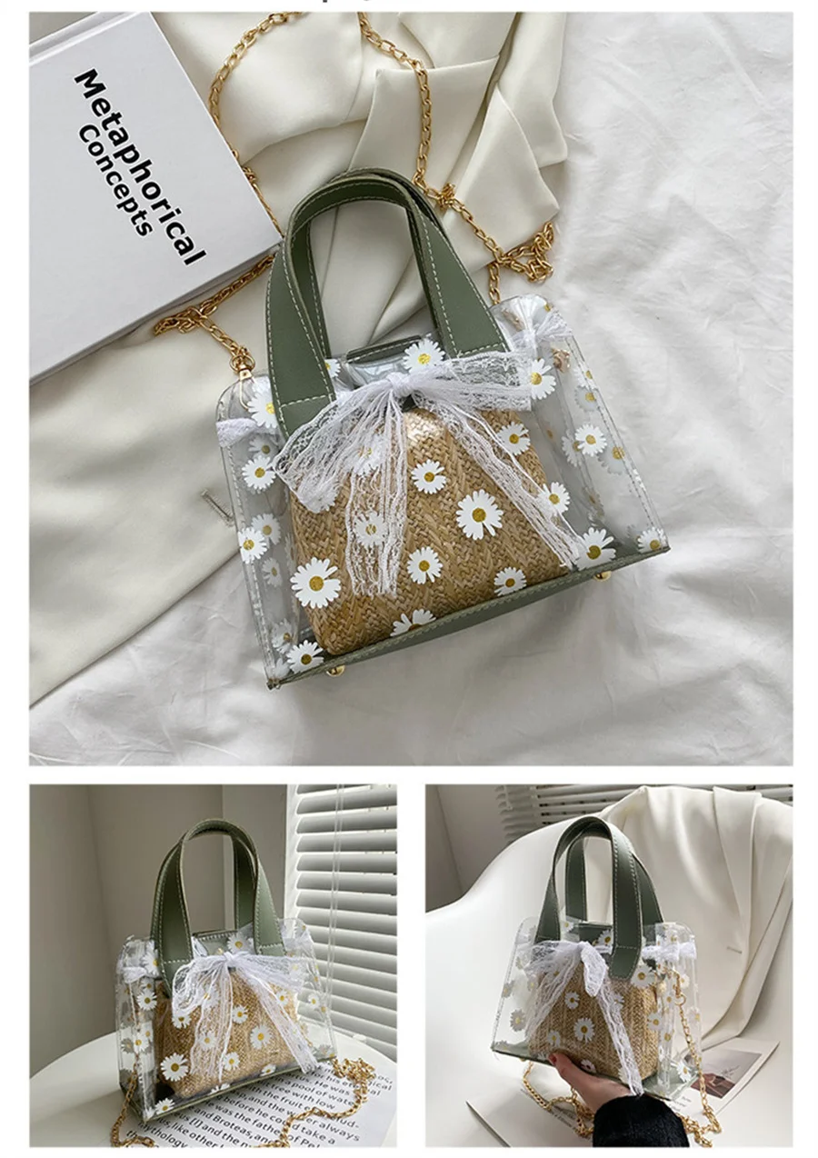 Прозрачная Плетеная соломенная сумка через плечо с цепочкой Женская квадратная