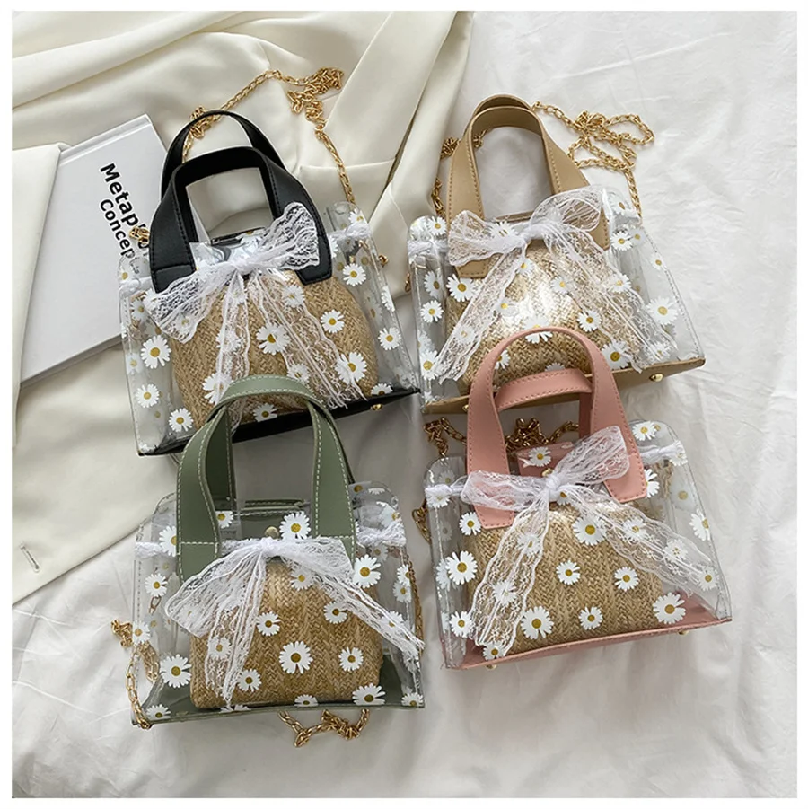Прозрачная соломенная плетеная Сумка через плечо женская квадратная сумка через плечо для женщин F1237