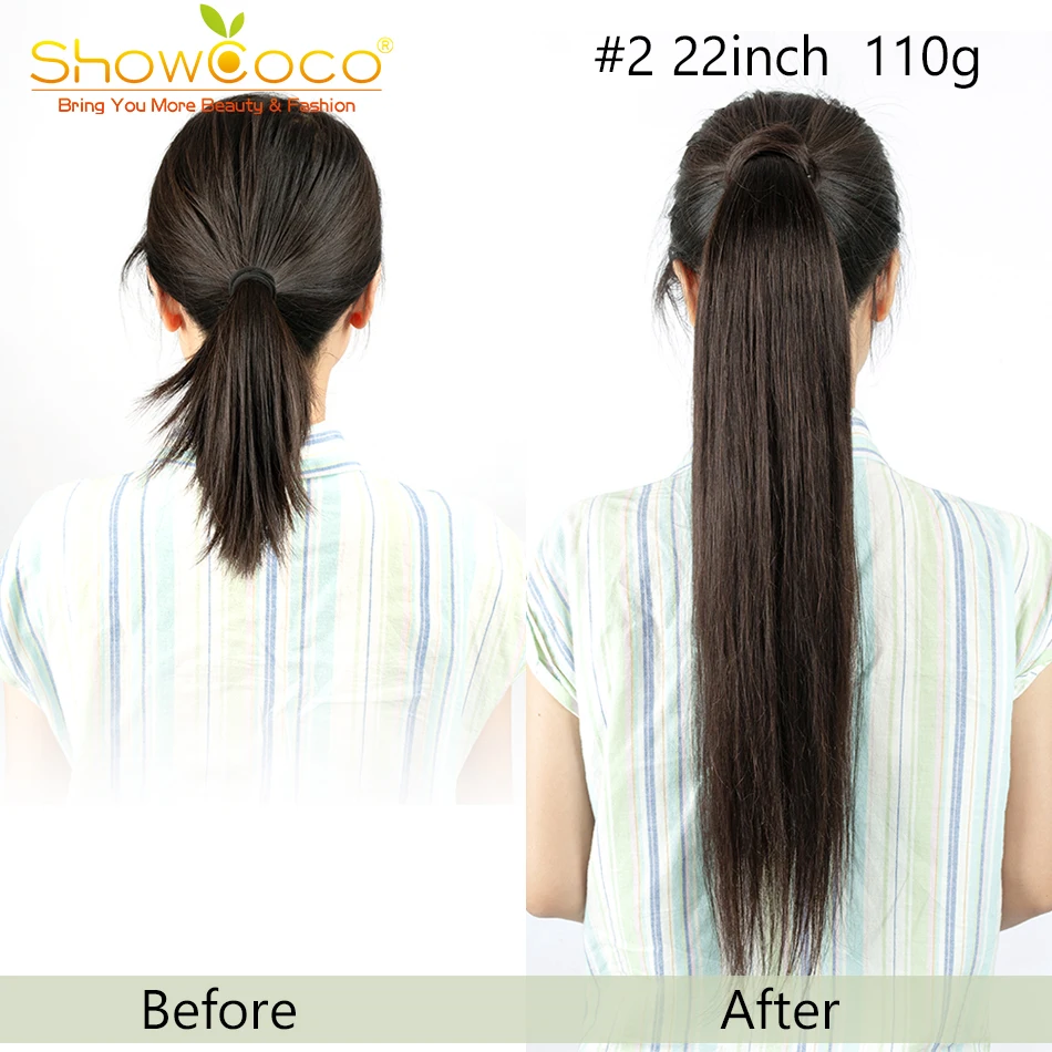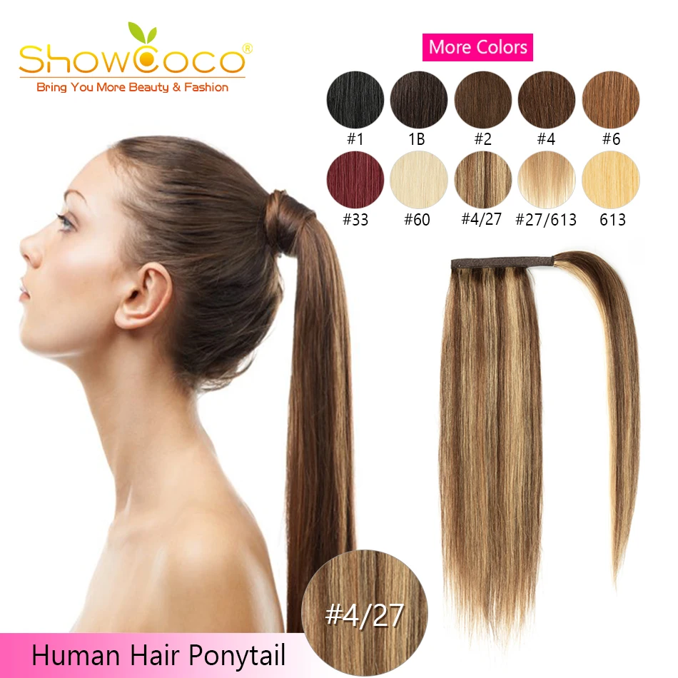 Зажим Ins конский хвост человеческие волосы машина Remy 14 ”-24 дюйма обертывание вокруг конского хвоста наращивание шелковистые прямые волосы Showcoco