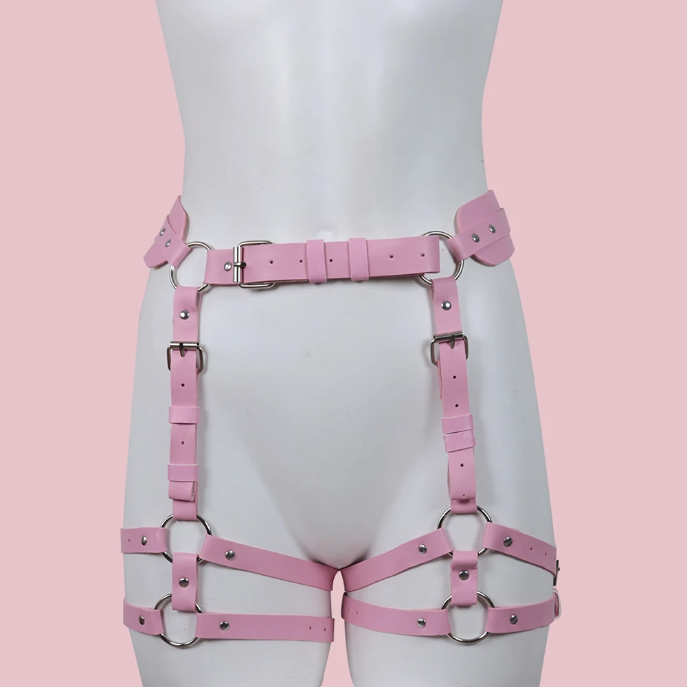 Кожаный ремешок, металлические винты и кольца, регулируемые пряжки;