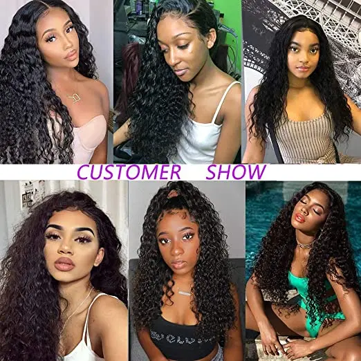 ZHUO JIA Deep Curly Bundles With Closure Long Brazilian Hair 4 Human Weave Extensions Remy Lace Frontal Bundle | Шиньоны и парики