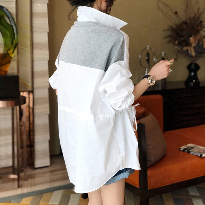Рубашка Женская Весенняя белая с воротником-лодочкой | одежда