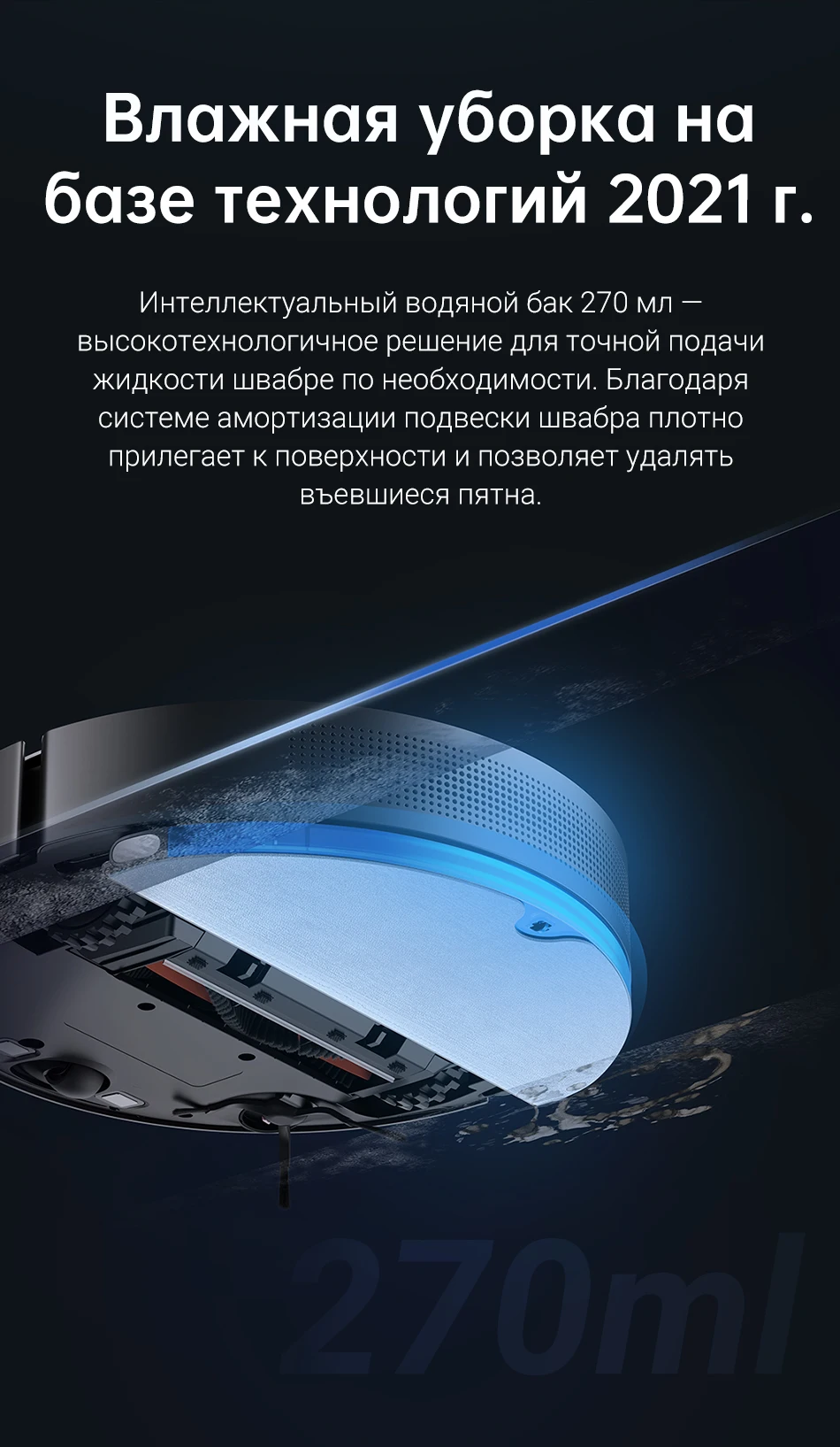● Бак для воды на 270 мл, интеллектуальный контроль воды для защиты пола.