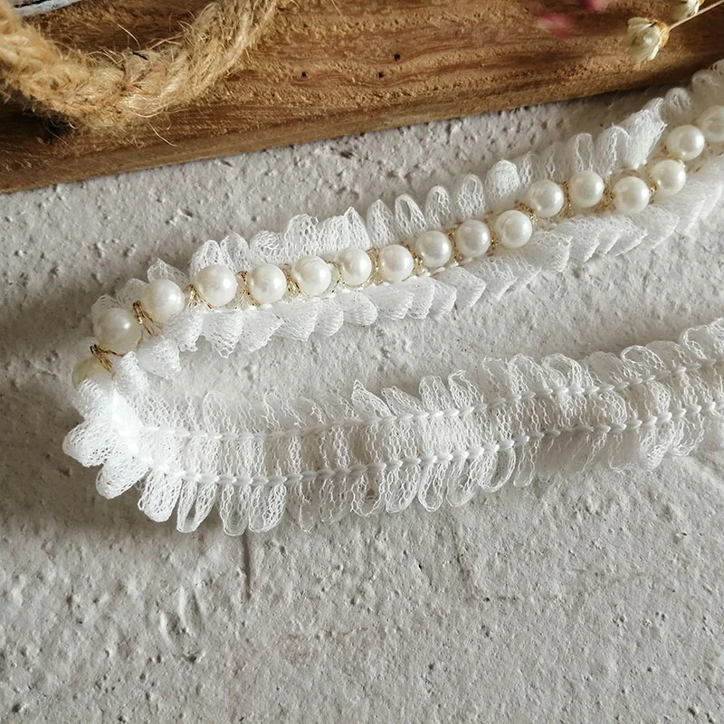 2 см ширина Whie сетка 3d плиссированная ткань жемчужное кружевное платье воротник вышивка бисером бахрома отделка Сделай Сам швейная отделка материал ручной работы