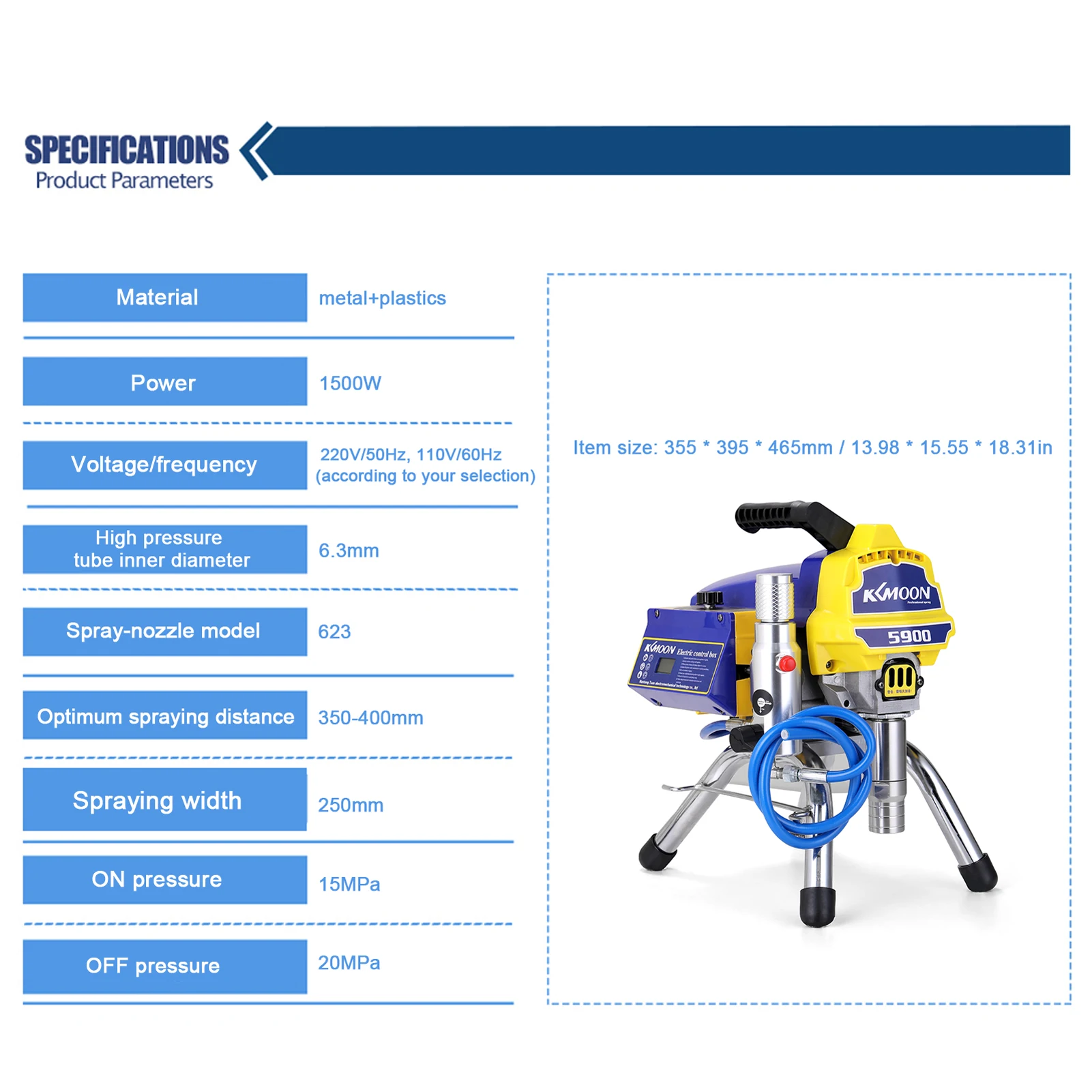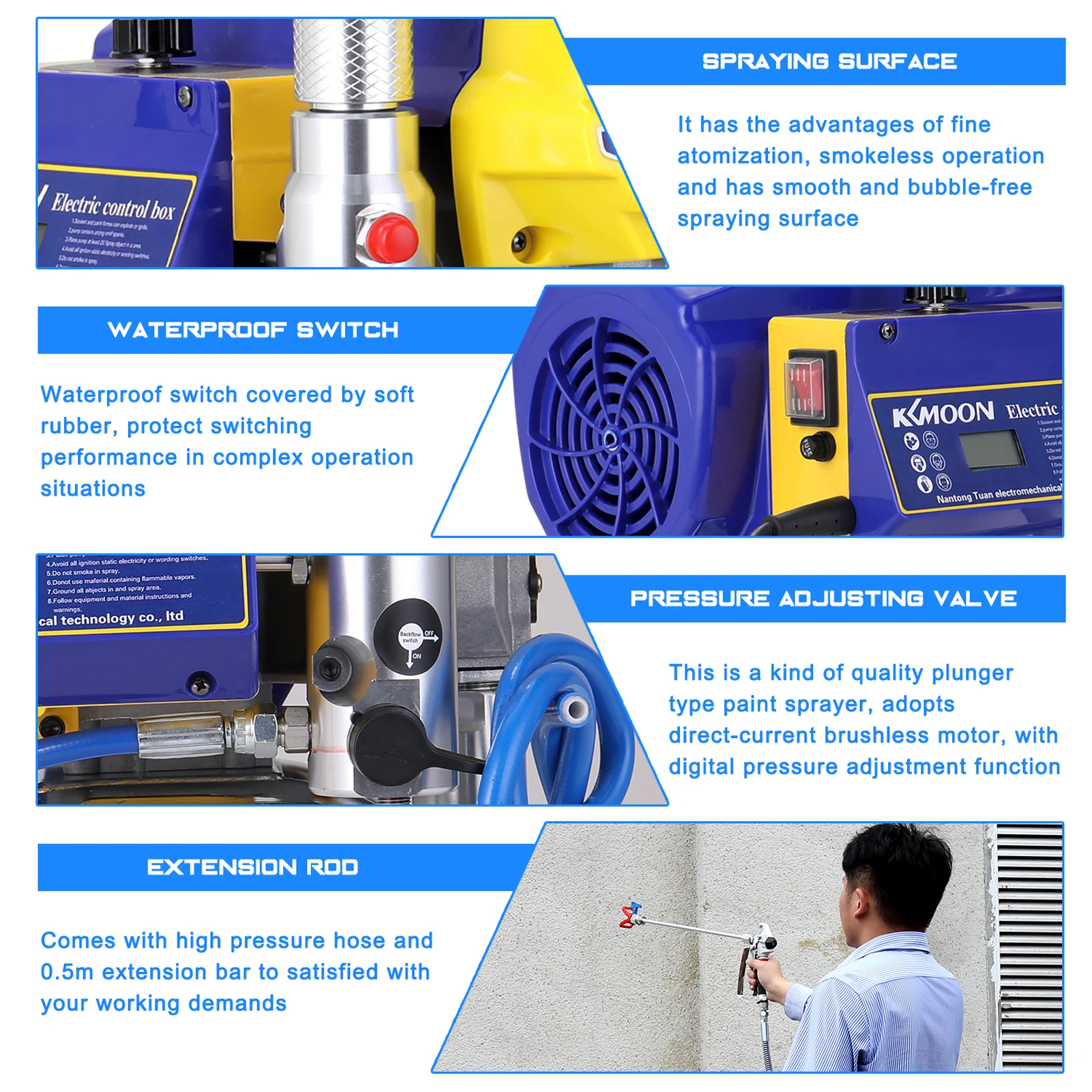 Это своего рода качественный плунжерный распылитель краски, принимает бесщеточный двигатель прямого тока, с цифровой функцией регулировки давления. Он имеет преимущества тонкой распыления, бездымной работы и имеет гладкую и безпузырчатую распыляющую поверхность. Широко применяется, подходит для распыления всех видов без гранул и низкой вязкости красок, краски и латекса. Домашние и наружные противопожарные, сохранение тепла и коррозионно-стойкие материалы, опрыскивание сада. Вы можете попробовать.