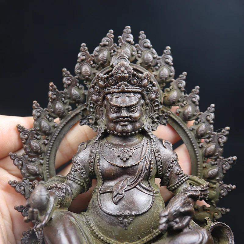 С фигуркой Будда из античной бронзы статуя, украшение для стола, украшение для дома, аксессуары для рукоделия, металлическая Китайская Скульптура бога богатства, винтажный Декор