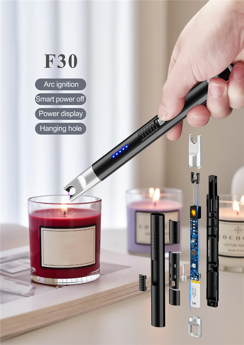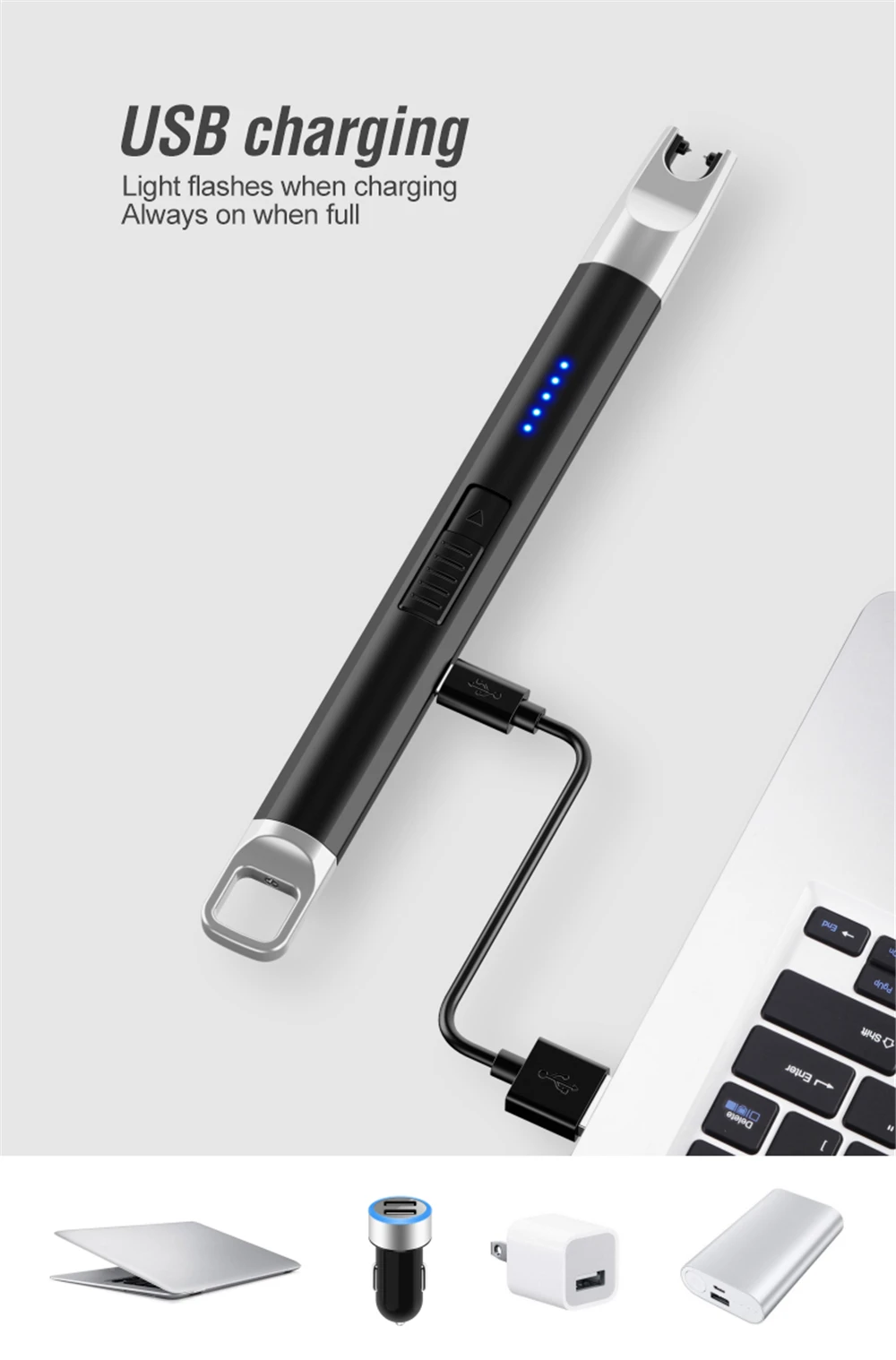 Новая длинная электронная USB Зажигалка зарядка беспламенная плазменная дуговая Зажигалка Ветрозащитная Зажигалка для кухни Зажигалка для свечей газовая плита
