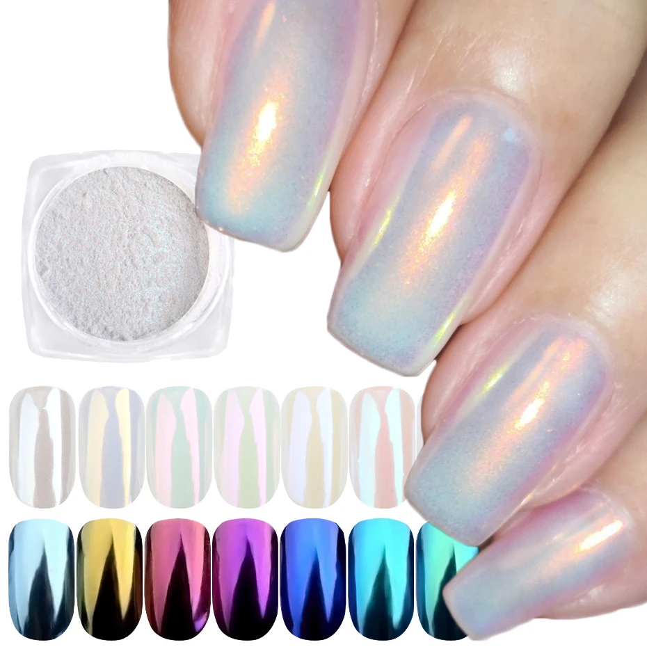Перламутровый блеск для ногтей порошок Шиммер Аврора пудры пыль твердый Русалка хром зеркало пигмент гель лак для ногтей Декор SAG01-06-1