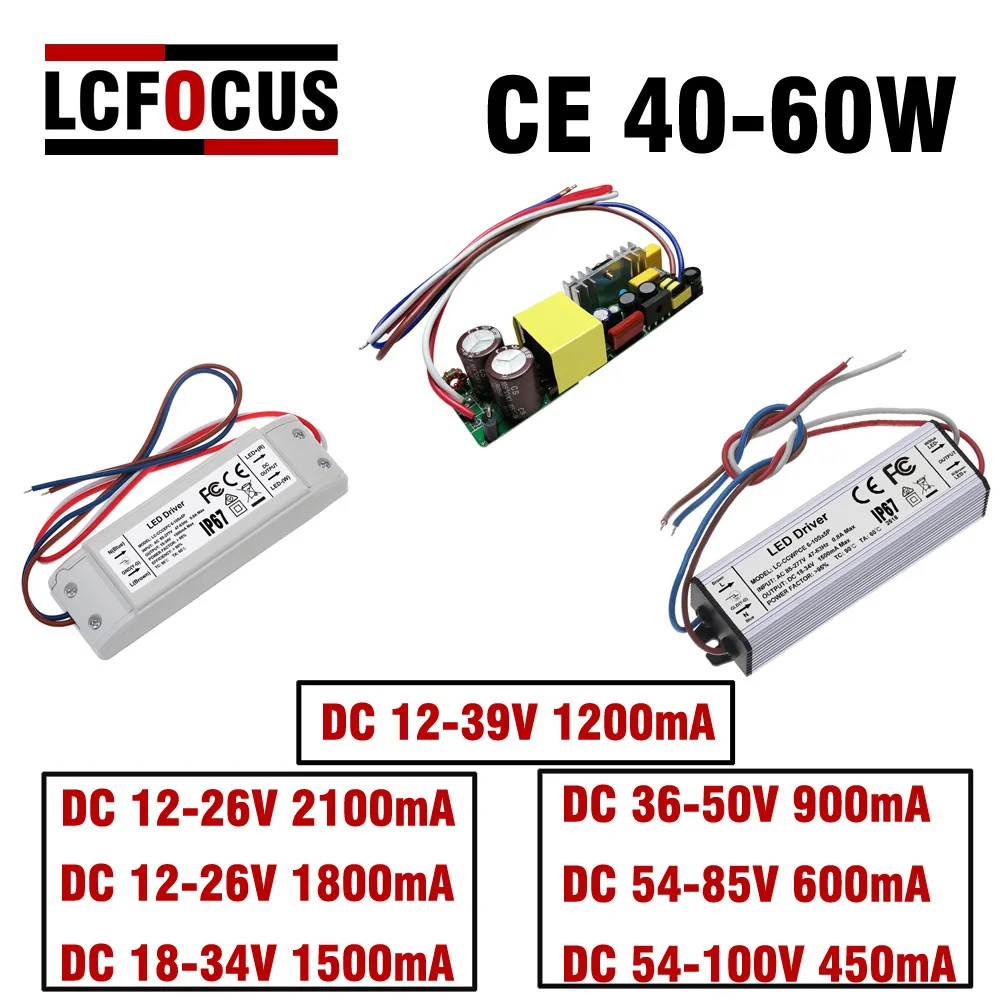 Трансформатор освещения постоянного тока 40 Вт 50 Вт 60 Вт 54-100 в 450мА светодиодный драйвер 18-34 в 1500ма источник питания 12-26 В 2100ма