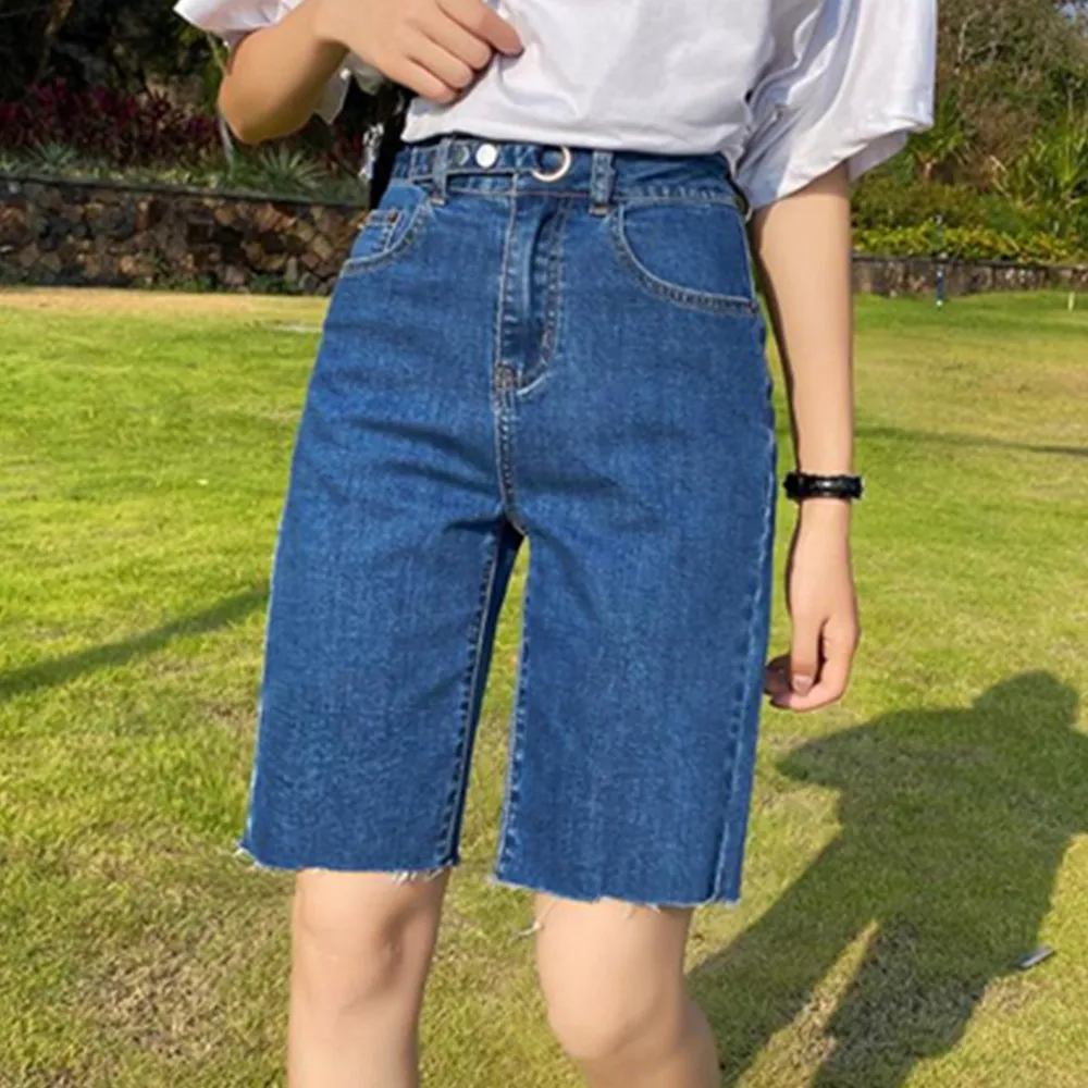 Название: Новинка 2022 года; Джинсовые шорты с высокой талией; Женские синие длинные шорты до колена; Женские летние повседневные джинсовые шорты-бермуды; Femme