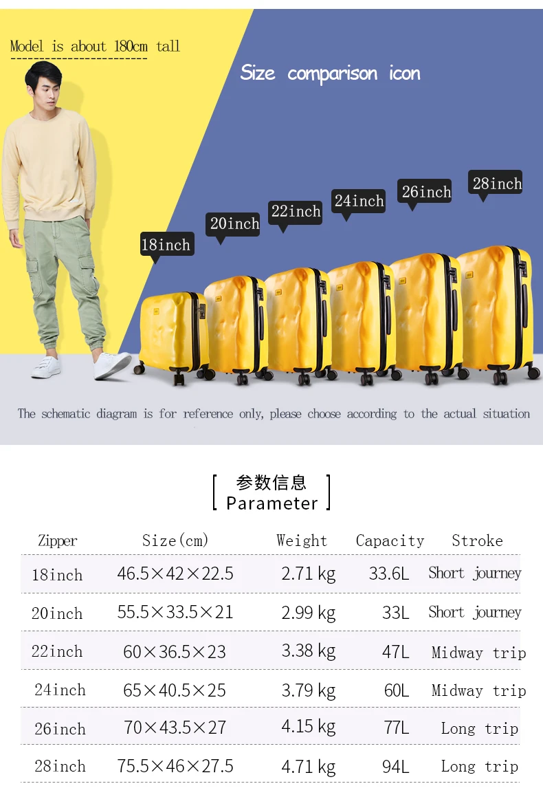 Примечание: 18 дюймов-это квадратный чехол на колесиках, 20 дюймов и выше-длинный.