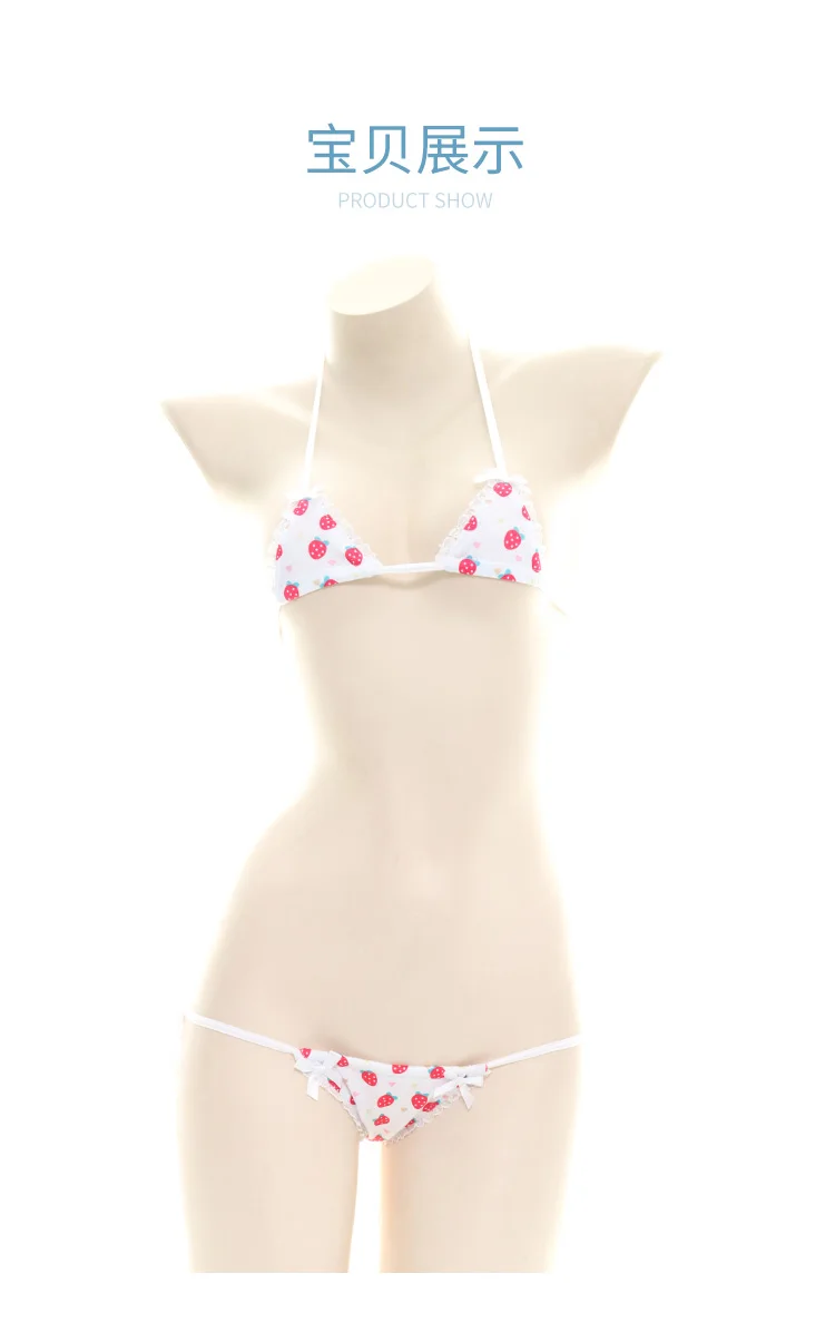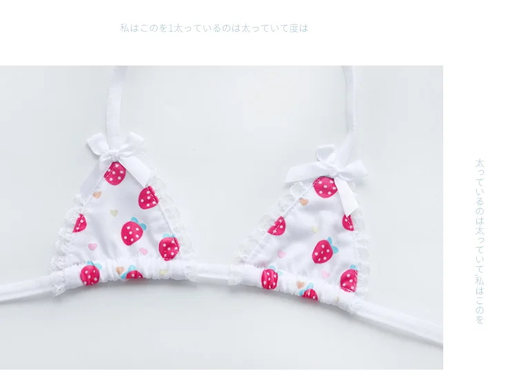 Милые сексуальные женские Мини Клубничные повязки с кружевной отделкой комплект бикини Косплей Японская Лолита мягкий бюстгальтер для девочек и трусики нижнее белье костюм