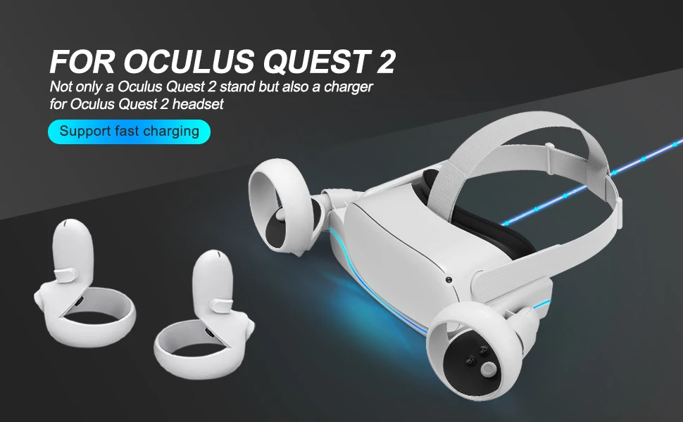 【 Высокоскоростная зарядка: поддержка быстрой зарядки, Встроенный смарт-чип. Oculus Quest 2 полностью заряжен всего за 3 часа. Зарядная Станция оснащена яркими дышащими лампами, так что процесс зарядки больше не монотонный, но красивый и удобный!